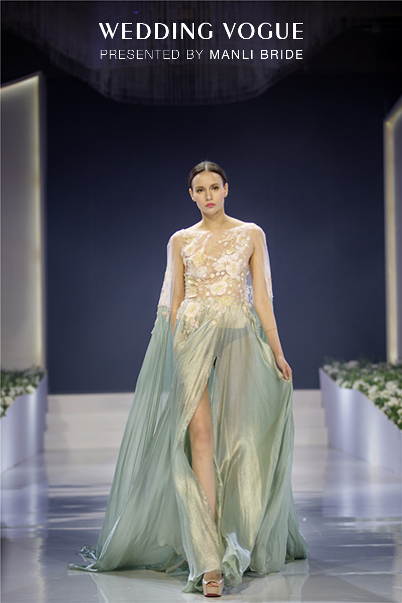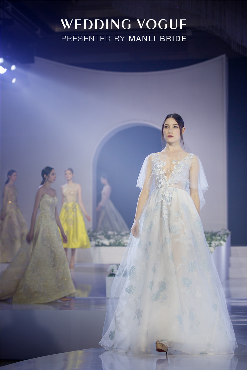纯白色的舞台背景,更是让衣服在刹那锋芒毕露,质感尽现。MANLI BRIDE高级定制以引领潮流的设计和精细的手工,打破现实与虚幻的规则与界限,创作出一场穿越时空的绮丽梦想。
