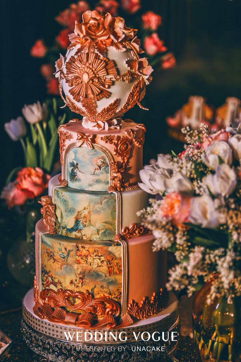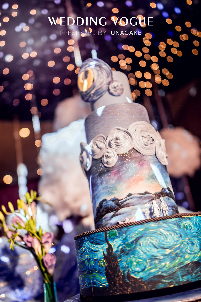 UnaCake注重设计,秉承着把每个蛋糕都当作艺术品去创作。一场好的甜品作品,从拿到方案起,需要经过和新人或是婚礼机构的多次沟通,在沟通的基础上构思,设计成了重中之重,把设计思路通过手绘的方式展现,再到繁复的制作,这需要的不仅是一份耐心,更是对甜品的一份爱心。所以UnaCake一直控制接单量,坚持给新人最好的作品。