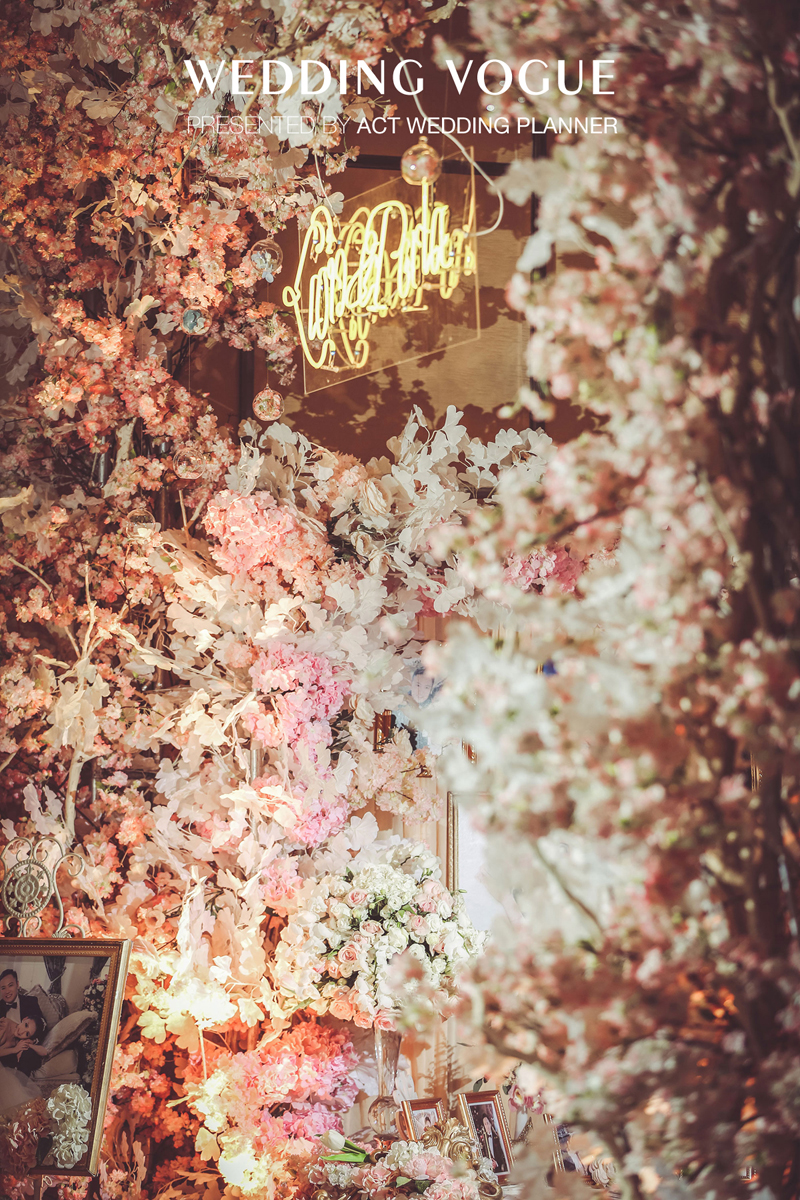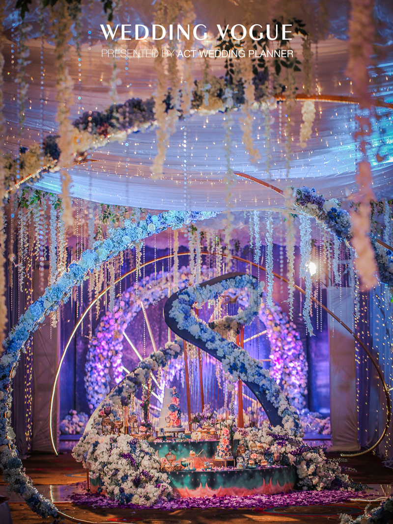 婚礼布置中的成本本就是由多方面构成,从舞台的设计到现场执行还有设计师与工人的搭建,是不可能剔除其中的任何一部分。而一场完满的婚礼布置,从婚礼功能性的角度上来说,通常需要签到区;展示甜品区;迎宾背景;主舞台以及T台,但ACT策划婚礼中心打破传统意义上的特定区块分布,结合酒店的情况以及新人的偏好来定位。让每对新人都能够在这一天来临时,将自己的故事和爱情用最合适的方式呈现~