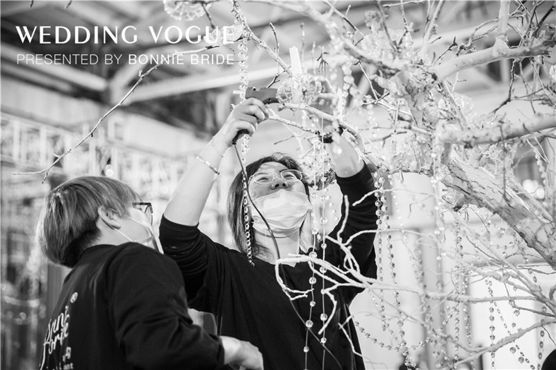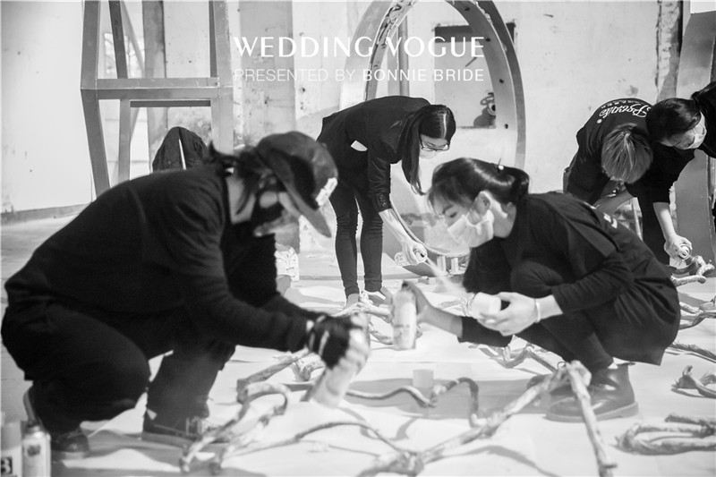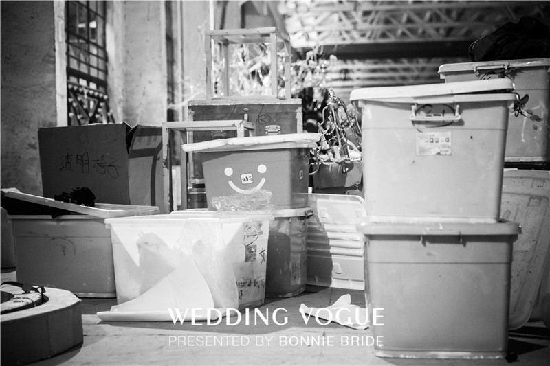 厂房搭建并不是一件容易的事情。因为比酒店面积更大,而且往往是一片空白的状态,所以从实地测量、到物料进场,整整三天都在闷热的厂房里埋头构建对于厂房婚礼来说是常事。而大到供电,小到桌布椅套,所有东西都要婚礼机构自己准备也是不小的考验。