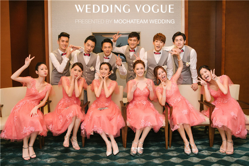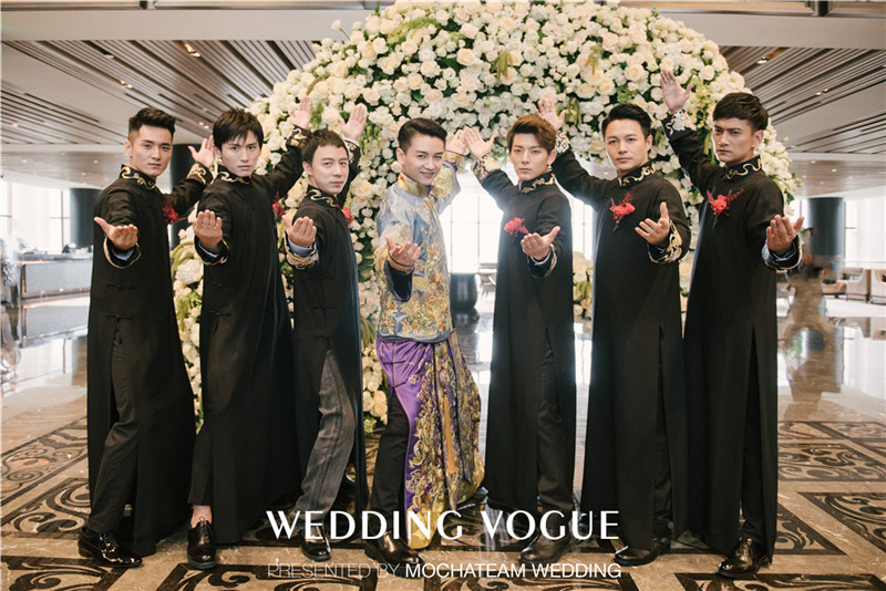 著名主持人谢楠担任本次婚礼的主持人。伴娘由陈乔恩、钟欣潼、胡冰卿、袁子芸、Freya、Andrea组成“史上最美伴娘团”,她们身着统一的粉色礼服。而伴郎由翔、郑国霖、王茂蕾、张哲瀚、冯起龙、何奉天等好兄弟组成,身穿黑色长衫。