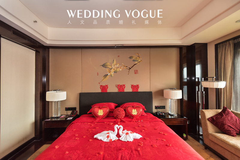 婚宴当天提供价值5,000元的江景行政套房及双人浪漫早餐送餐服务(包含精美鲜花、红酒、精美水果篮、定制巧克力、豪华婚房布置)
