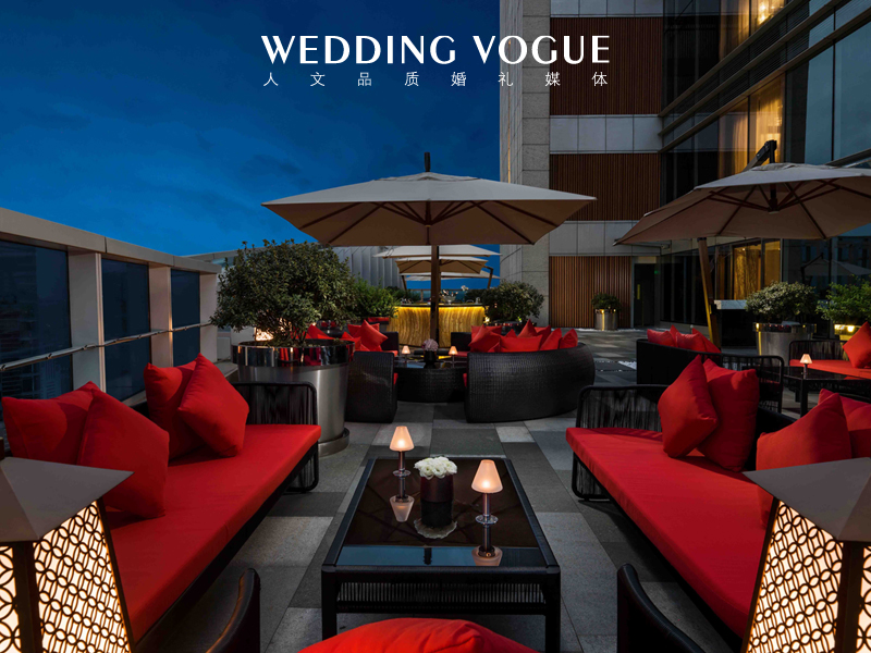 另一个婚礼场地位于27楼云端露天酒吧,是全成都市唯一拥有全露天设计的酒吧的五星级酒店,可纵观城市唯美天际线。这里也成为新人们追求独特婚礼体验的热捧地之一,适合50-60人的小型户外婚宴,也可作为仪式场地记录下新人的重要时刻。