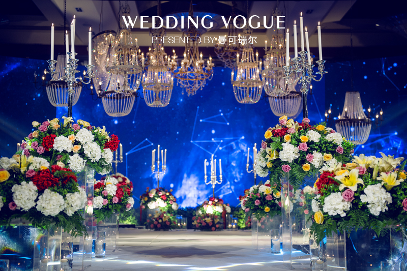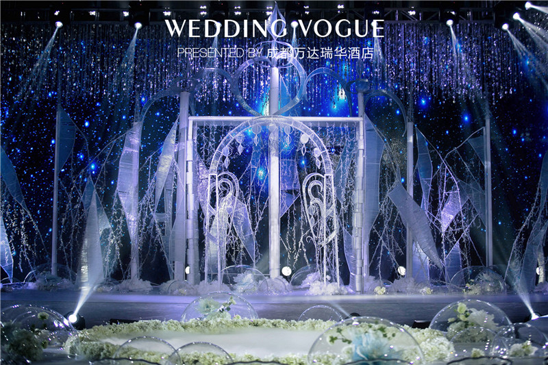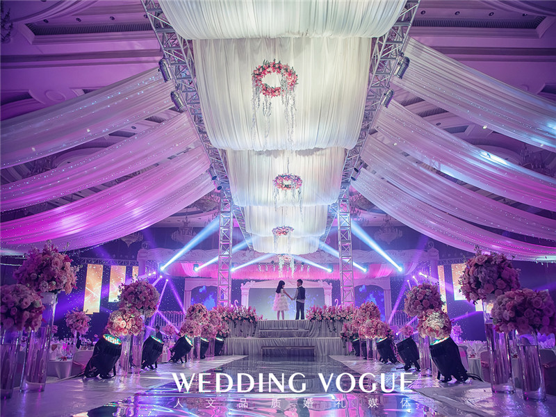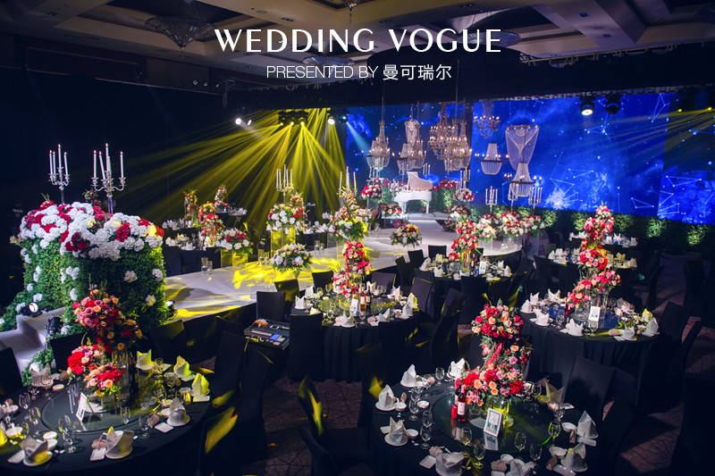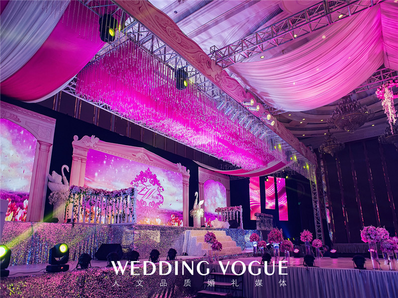 水晶婚礼——纵深近7米层高、近百平米高清LED显示屏配置的华美宴会厅(可容纳80桌)