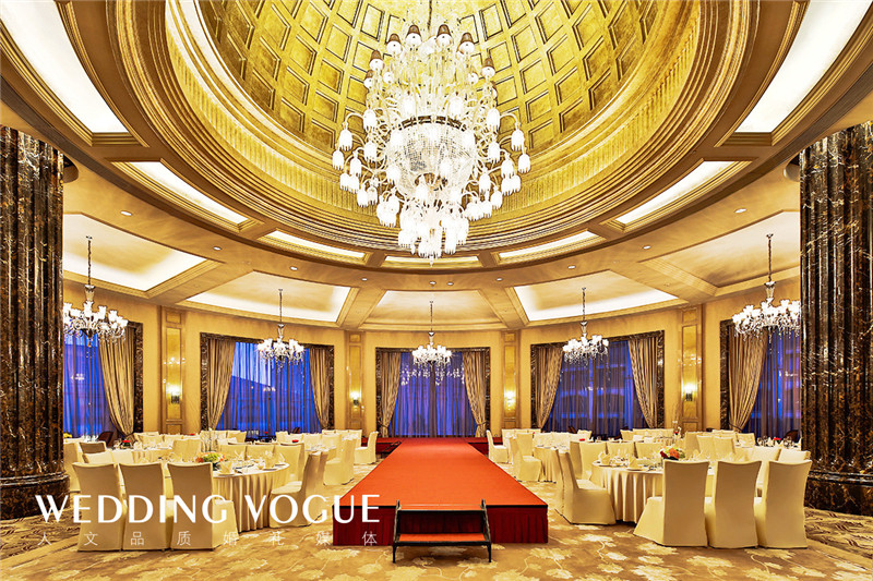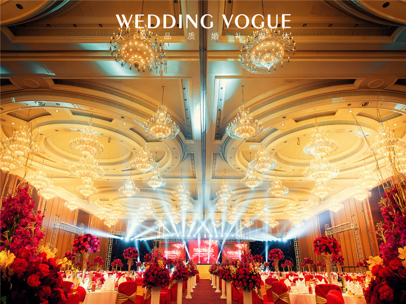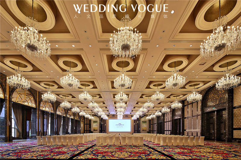 汉唐婚礼——无柱方正外加专业音响配置的水晶宴会厅(可容纳40桌)