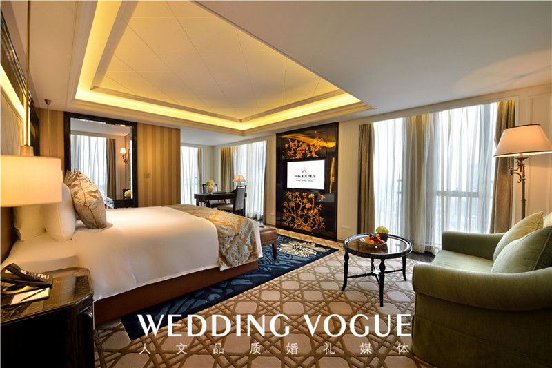 婚礼当天或提前一天,可入住酒店提供的免费婚房,次日享受两份双人早餐,赠送化妆间以及休息室。