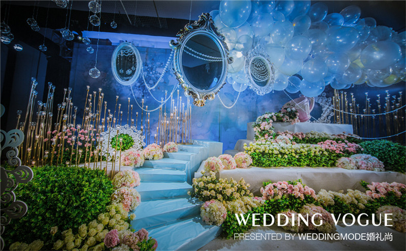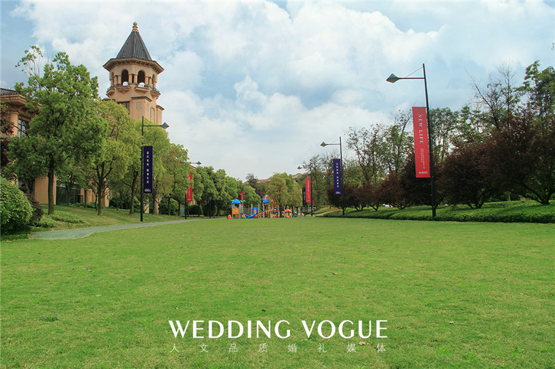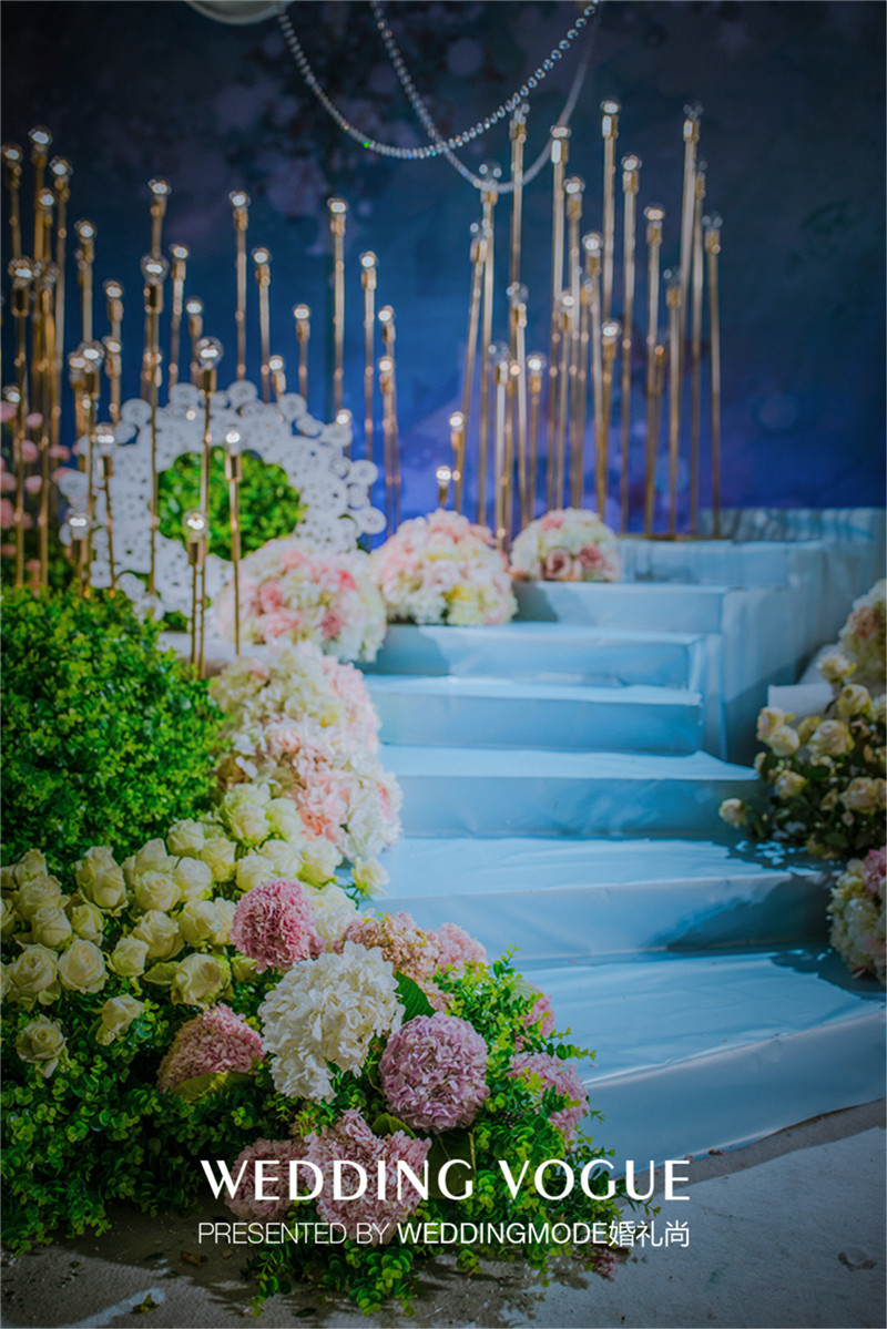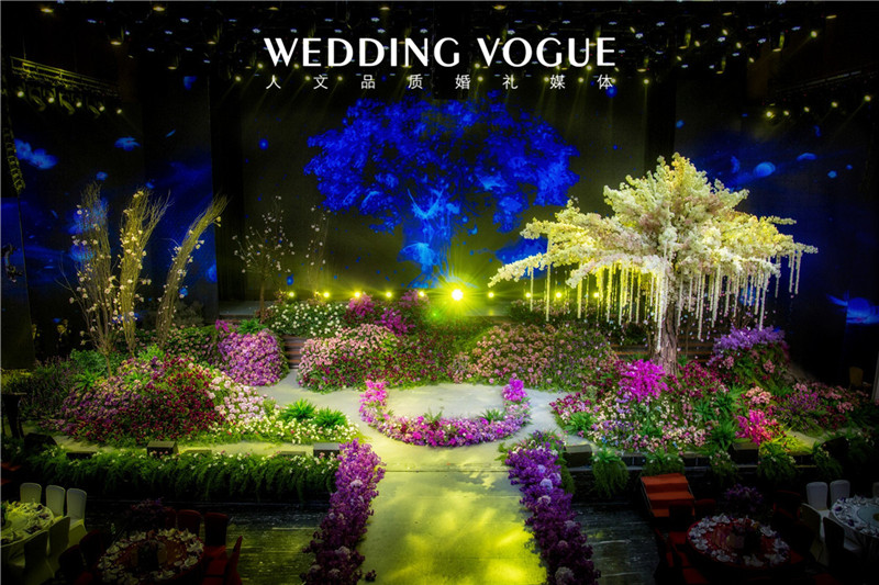 草坪婚礼——户外3000平米蓝草坪搭景旋转扶梯和连理树的隆重浪漫(可容纳1000人)