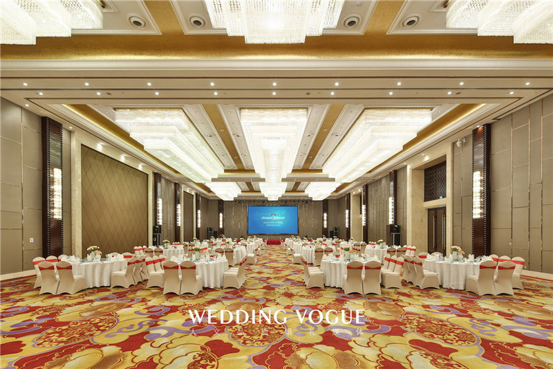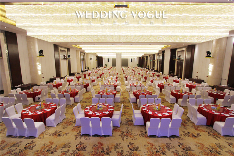 婚宴厅位于酒店3层,分为大宴会厅和6间多功能厅,适合举办各种庆典、私人聚会和商务活动等。面积为1150平方米的无柱式大宴会厅,层高8米,可容纳55桌宾客,配有90平米高清LED屏幕及可装载车辆的专用电梯,并且能容纳各种超大型装置,打破室内活动场所的空间局限,满足宾客的各项特别需求,给予宾客至高无上的舒适享受。