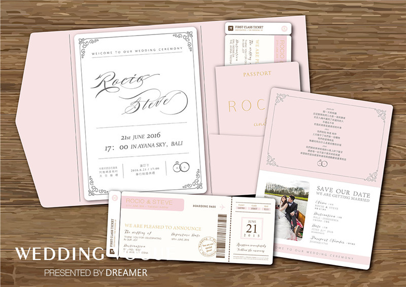新娘在英国读书,她为了与先生见面,经常搭乘往返于中英的航班,策划师希望这场婚礼回归爱情的本真。因此本次的婚礼请柬是根据护照与飞机票的样式设计定制的,细心地将巴厘岛地图及旅行温馨提示也放入了请柬内,让婚礼客人宾至如归。