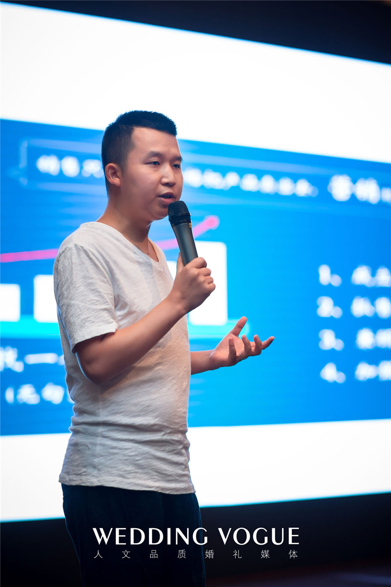 首先进行分享的嘉宾是喜来婚礼联合创始人王可,此次课程他就喜来婚礼12年来的发展概况,与同行们一起分享了婚礼行业终极发展形态的猜想。结合喜来婚礼的运营,他认为产品是基础,首先要做好产品,但是产品不是核心竞争力,同时要注重营销,包括具体的线上和线下营销,以及对品牌营销所做的具体措施介绍。品牌是灵与肉的结合体,最终导向是人们对美好生活的向往,所以品牌是企业最有价值的无形资产。同时此次课程是针对同行的分享,也是对自身品牌发展之路的探索,他相信小单子也可以做出大业绩,小城市也可以做出大品牌。