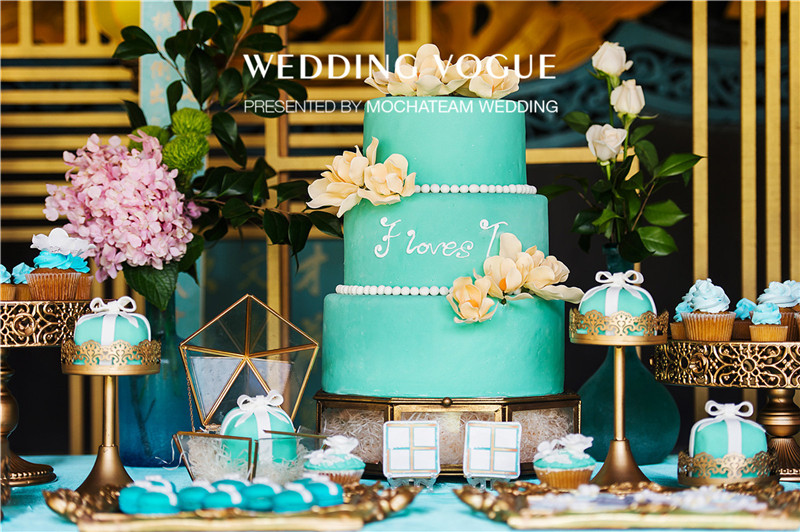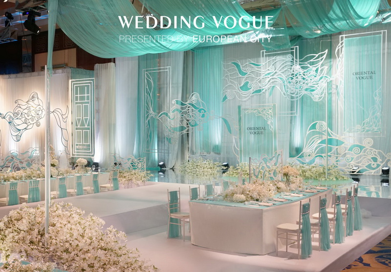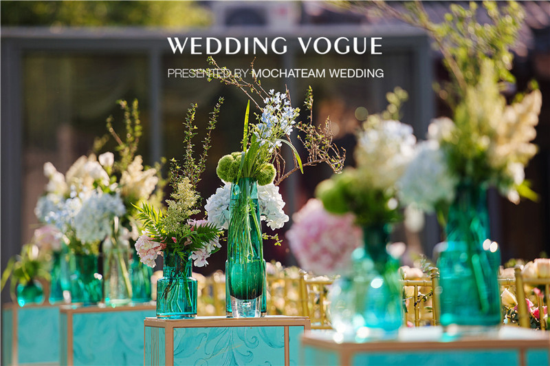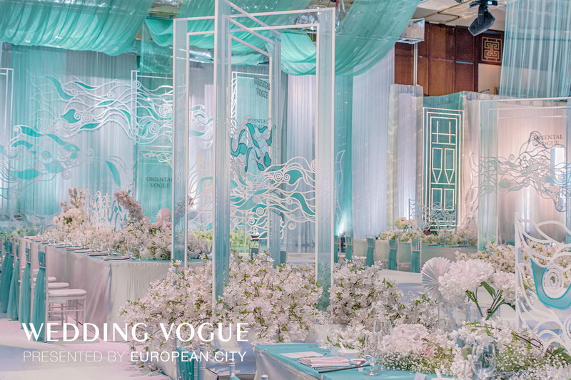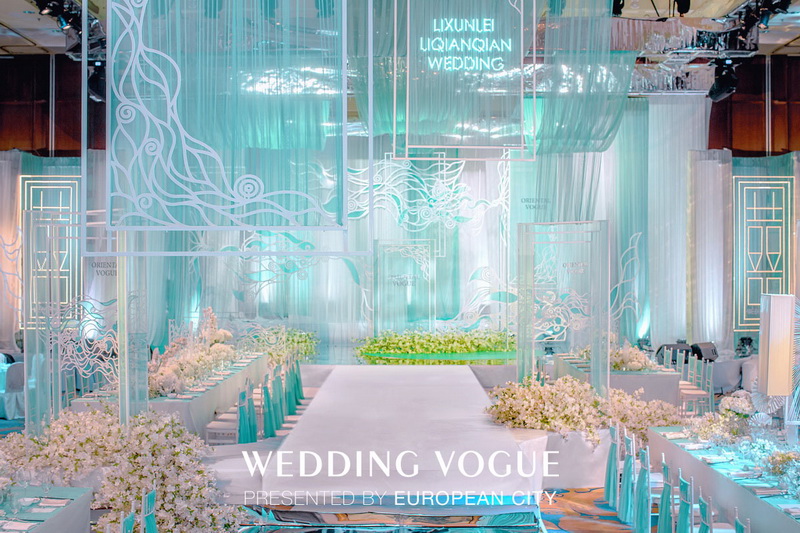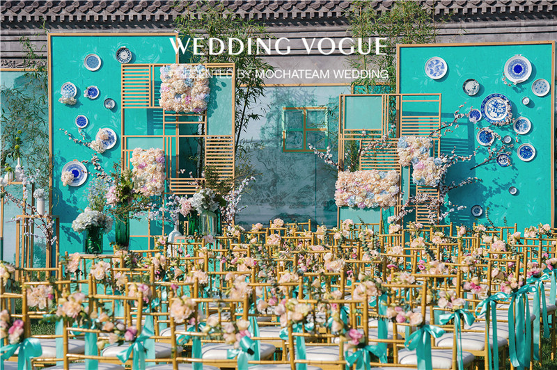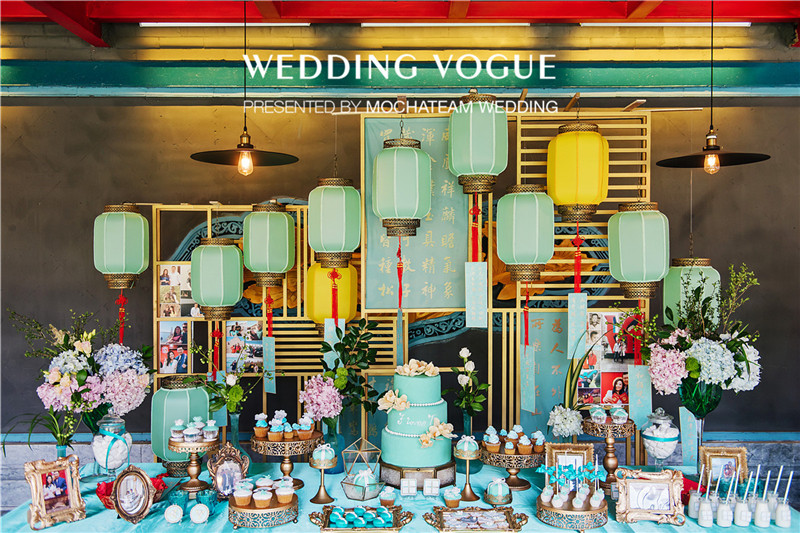 设计师将薄荷绿这种清新的颜色和中式婚礼完美的搭配在了一起。