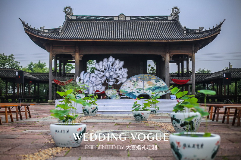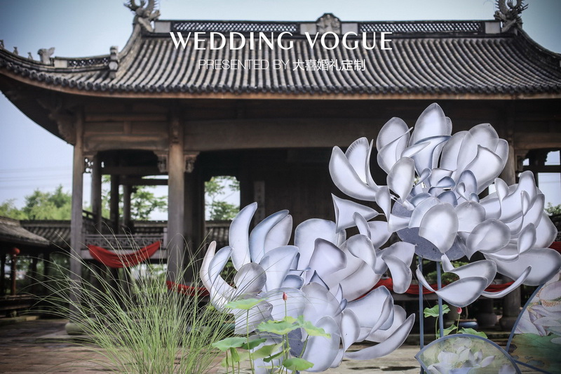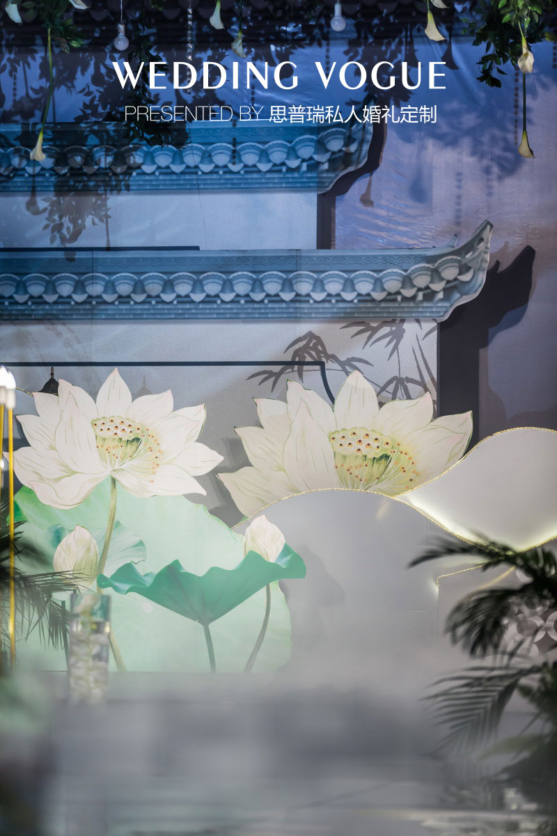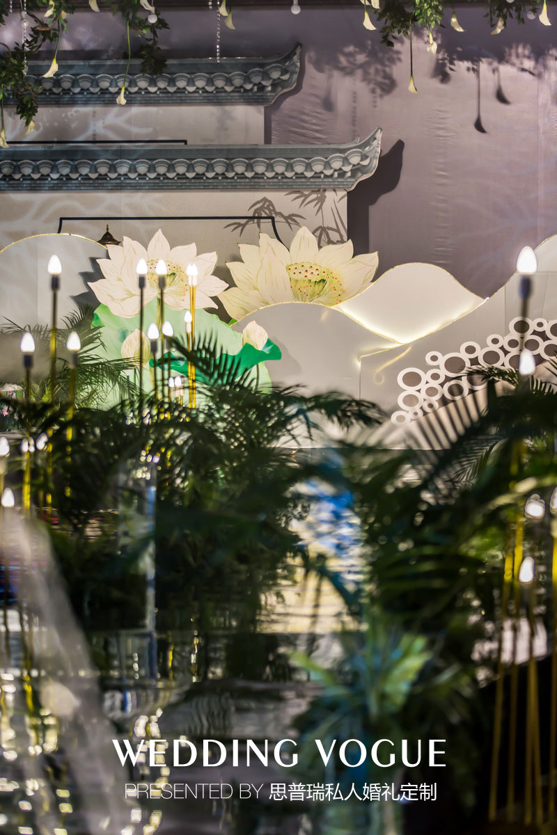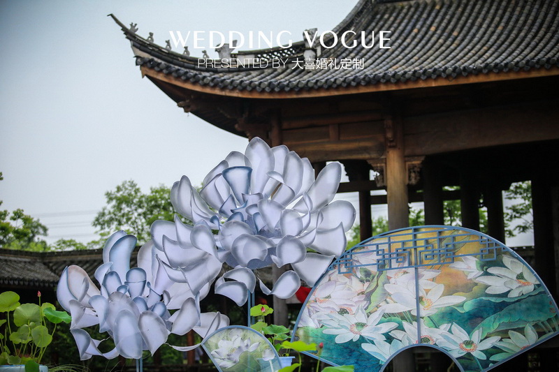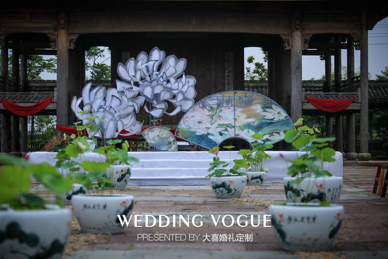 一场以莲为主题的婚礼布置,在江南水乡的林园建筑举行,