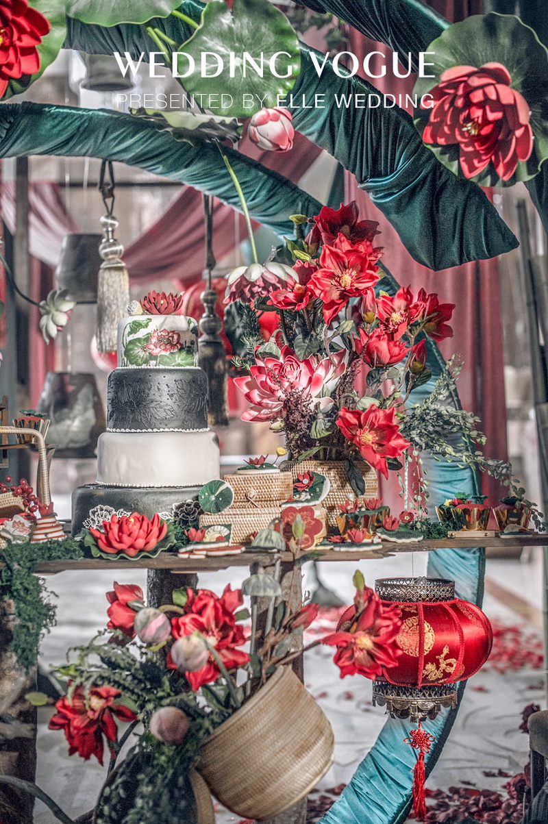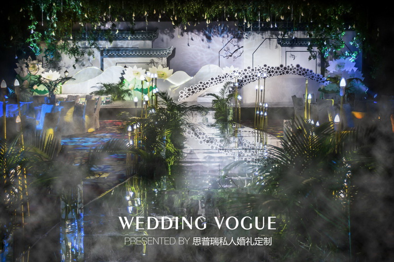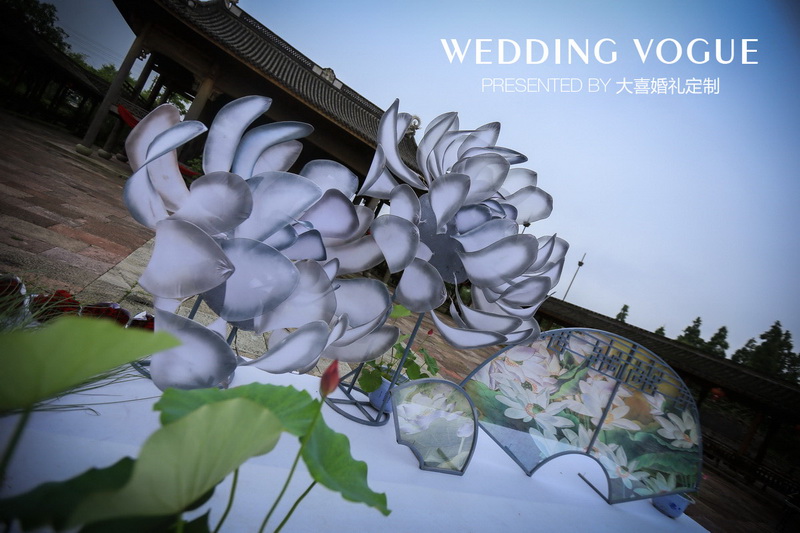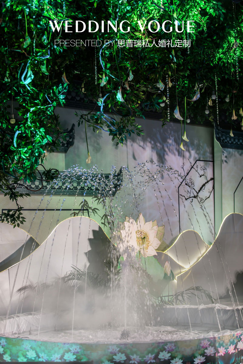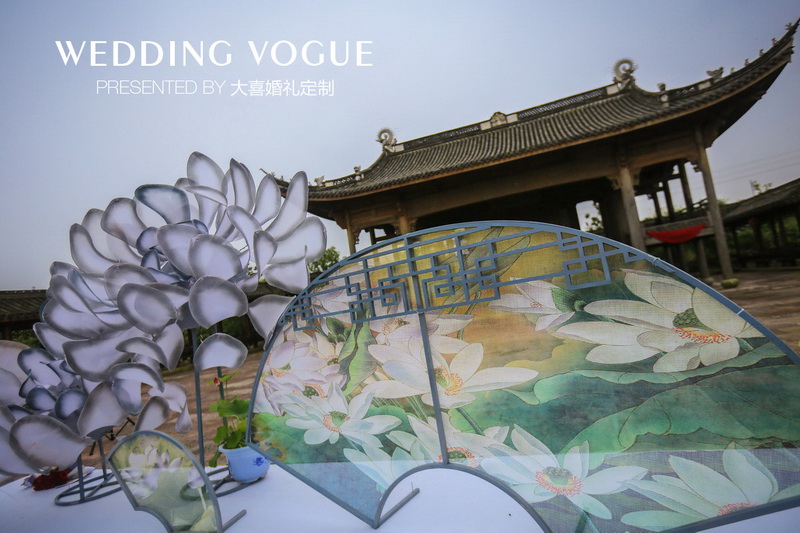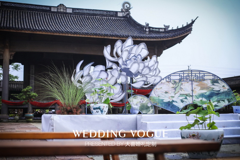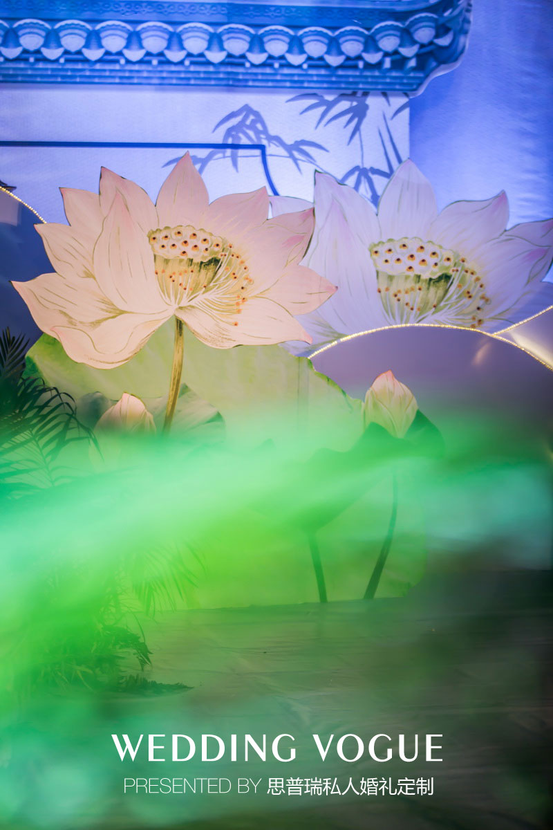 一场以莲为主题的婚礼布置,在江南水乡的林园建筑举行,