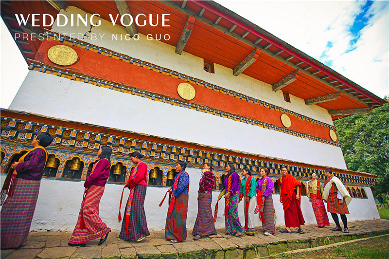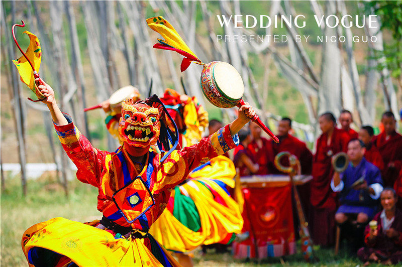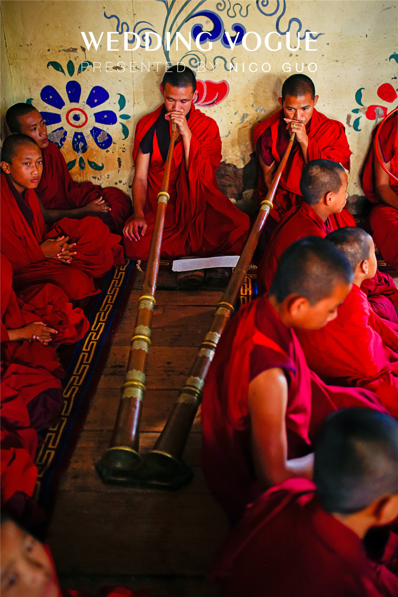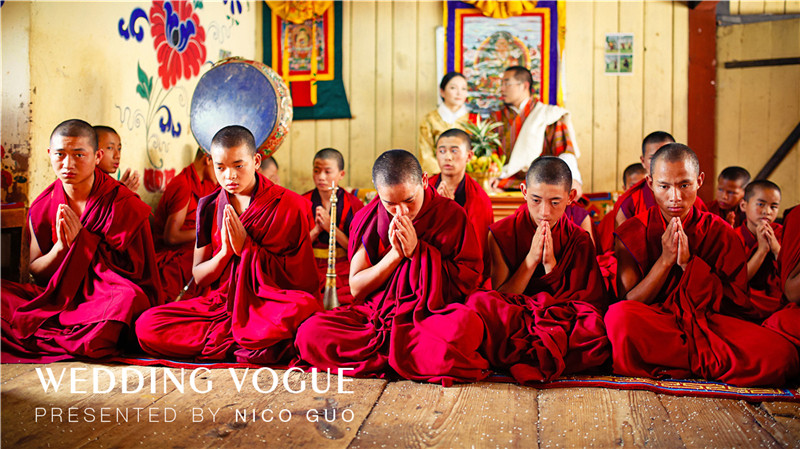 据说举行有宗教色彩的婚礼是非常神圣的会受到神灵的祝福和庇佑,而且下雨更吉利,因为在不丹,下雨是喜悦的象征,人们说似乎上天也对两人的婚礼给予祝福。