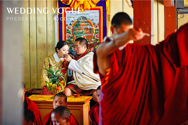 因为新郎是虔诚的居士,所以想要一场传统的佛教婚礼,加上梁朝伟和刘嘉玲之前在不丹进行了一场很有意义的传统皇室婚礼,是由大喇嘛证婚的,新娘也非常向往。所以他们决定将这个婚礼放在不丹举行。