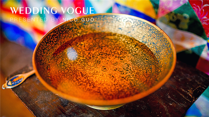 然后高僧会端来一碗茶水交给新人。新郎双手捧碗饮过茶水之后再转赠新娘,新娘再饮一口,寓意夫妻双方同饮一碗茶,白头偕老。在主持高僧为新人行礼时,其余的僧人则吹奏佛家乐器为婚礼配乐,气氛显得非常庄严肃穆。