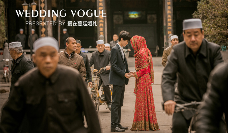 新娘婚服一般着裤装,绝对不能裸露肩膀和手臂,即便是裙装也须及脚踝。新娘的头纱须遮盖头发、面颊及脖颈,相较日常的头纱更为华丽,装饰图案也多为伊斯兰风格。伊斯兰教推崇纯净、俭朴、自然的颜色,白、黑、绿为穆斯林服饰主要色彩。而汉族则推崇代表喜庆的红色,受之影响,回族新娘服饰中所有的部分皆为红色。