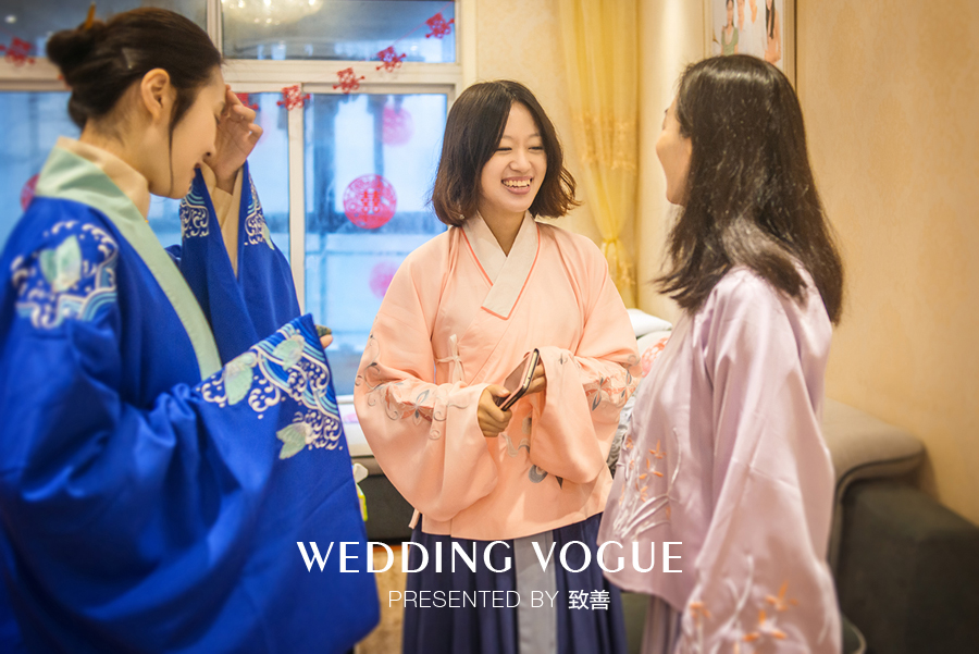 新娘亦在家长和侍女的陪伴下细细梳妆打扮,安静等待婚礼开场。