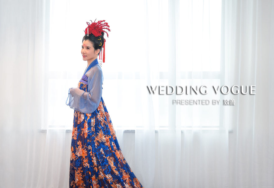 齐胸裙上印制华贵牡丹,真真是应了那句“ 惟有牡丹真国色,花开时节动京城”。且牡丹乃唐朝国花,亦与本次唐式婚礼完美契合。