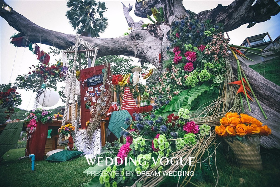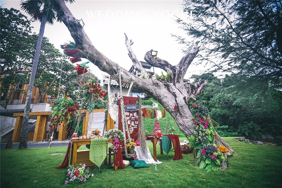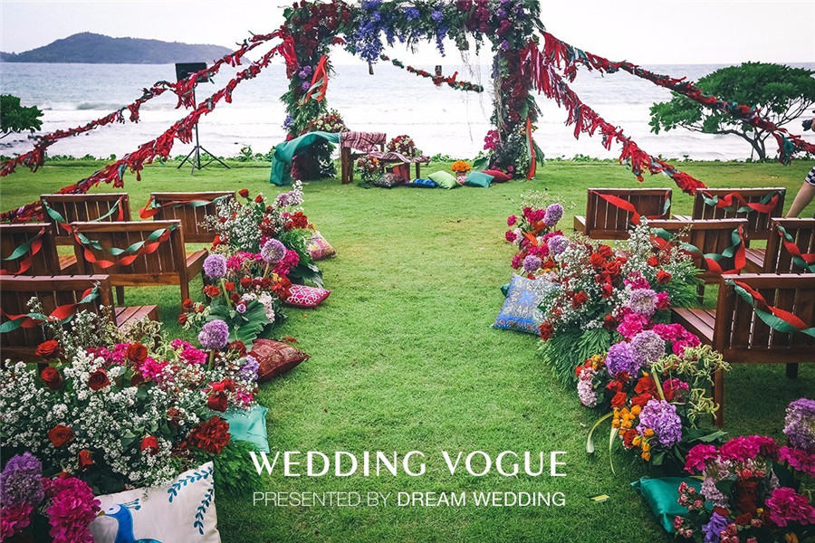 艳丽的色彩碰撞与融合、一场西班牙风情的婚礼在美丽的海岛普吉上演。跳舞花]大胆的色彩搭配,不羁、火热的元素在婚礼中表现得淋漓尽致。自然营造的瑰丽景象下,我们赋予这场婚礼火热的美。以西班牙风情基调,与艳丽的色彩碰撞相融合。让每一个参与者,都心情松弛,面向大海,辽阔晴朗。