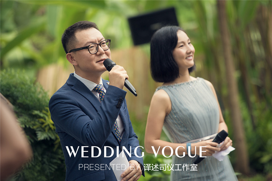 “两位主持人好,辛苦了,婚礼拜托了。”