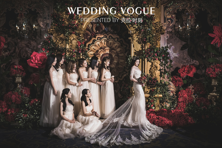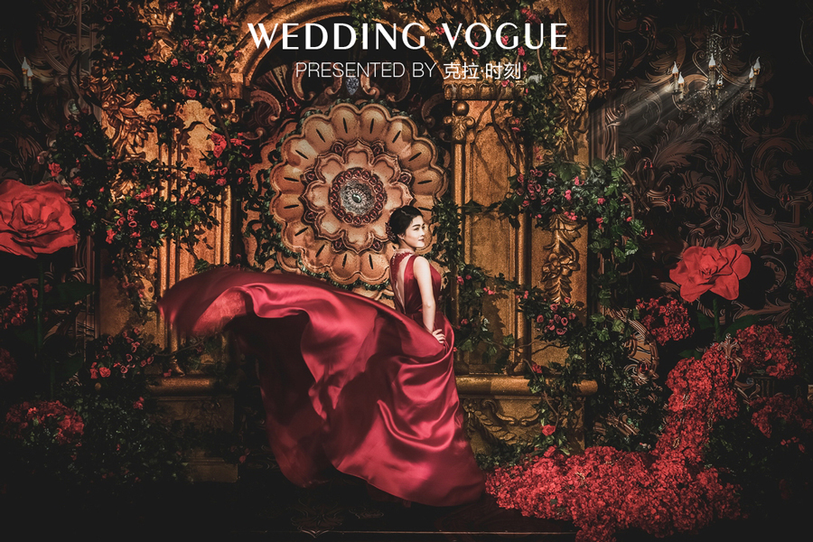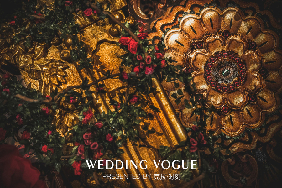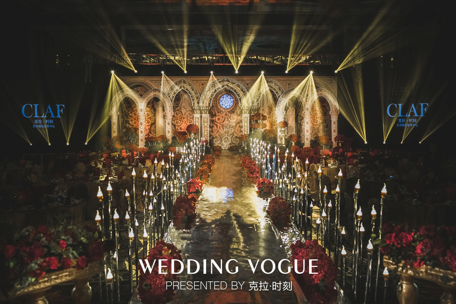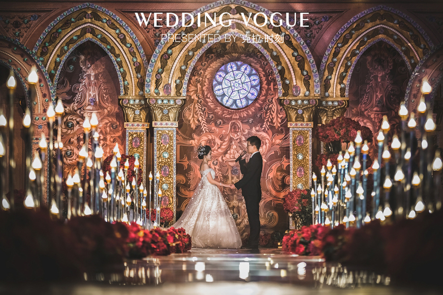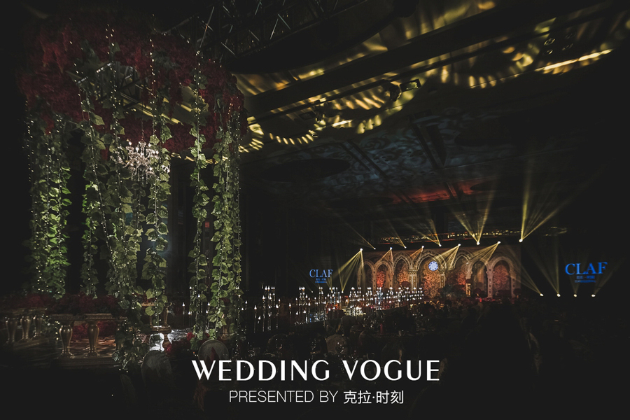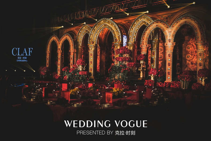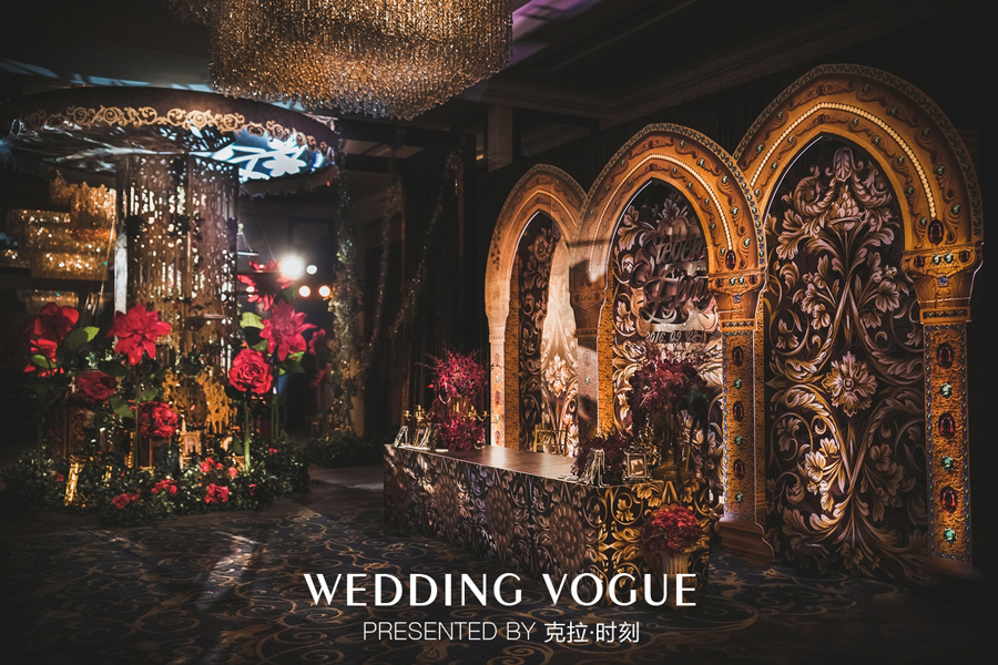克拉·时刻作为这场婚礼的策划团队,首先尊重新人的婚礼需求:复古和红色,考虑到婚礼整体的氛围,决定整个设计走的是巴洛克复古风格。布置上引用厚重的文艺复兴晚期到巴洛克风的过渡时期的建筑结构,搭配攀爬的藤蔓和蜿蜒在藤蔓上盛开的红玫。