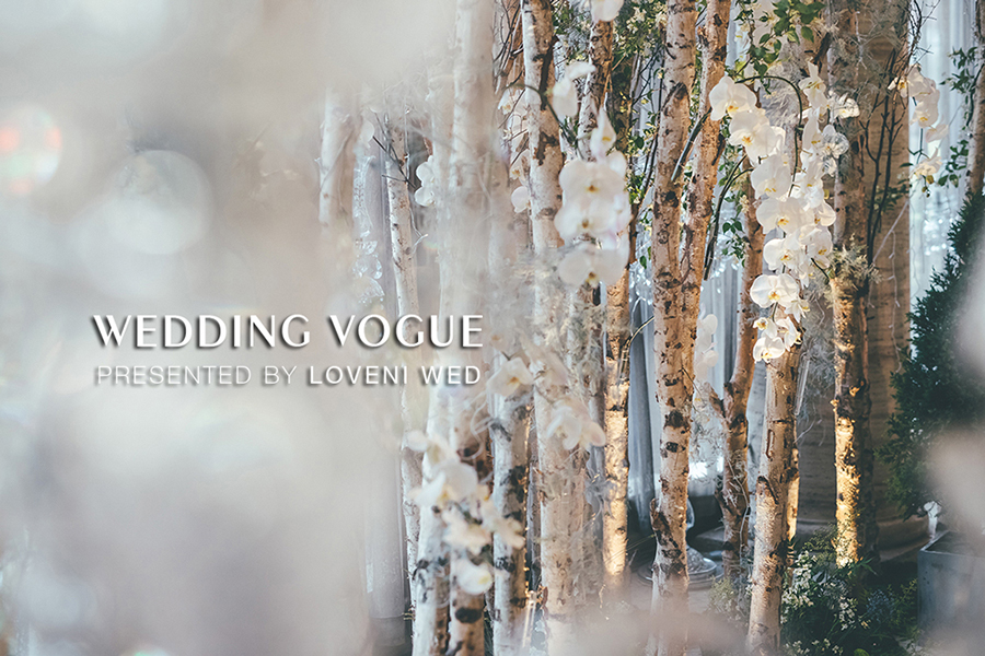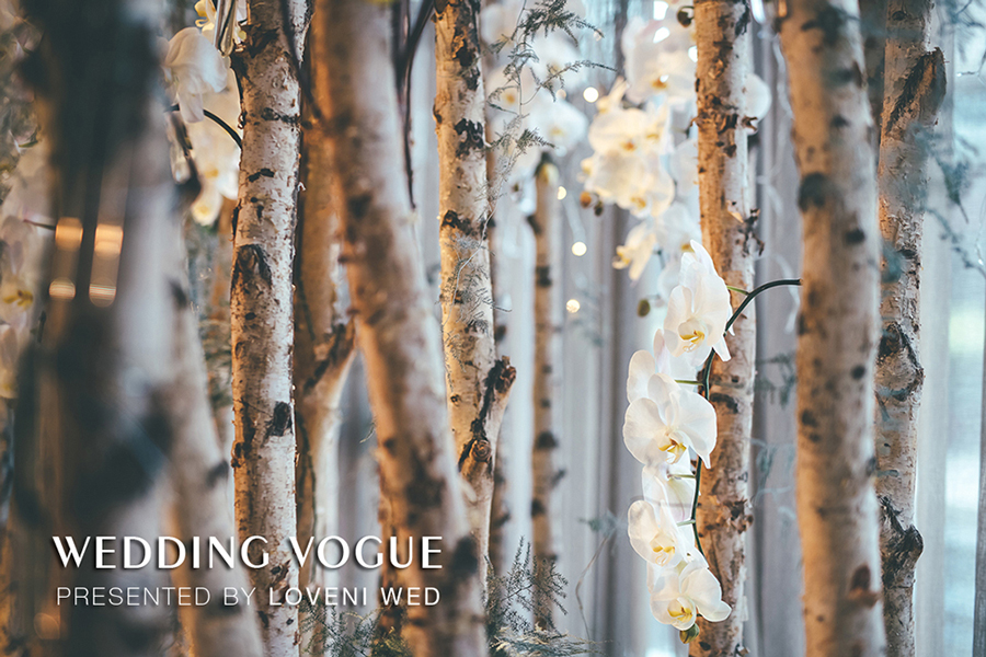 通透的玻璃空间里,白桦树错落环绕其中,交错的白桦树之间,白色蝴蝶兰与太平花穿插其中,浪漫神秘而又富有层次。