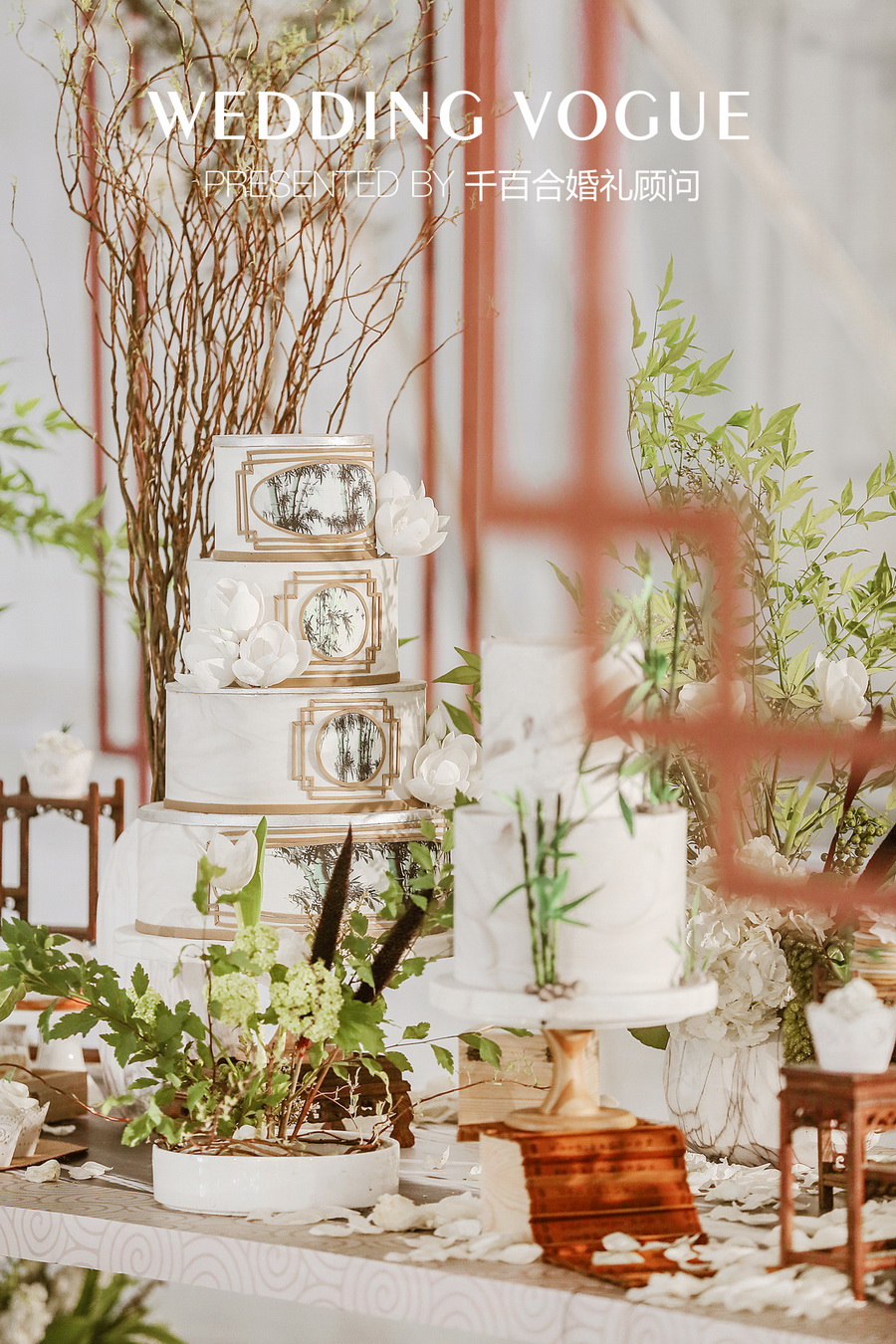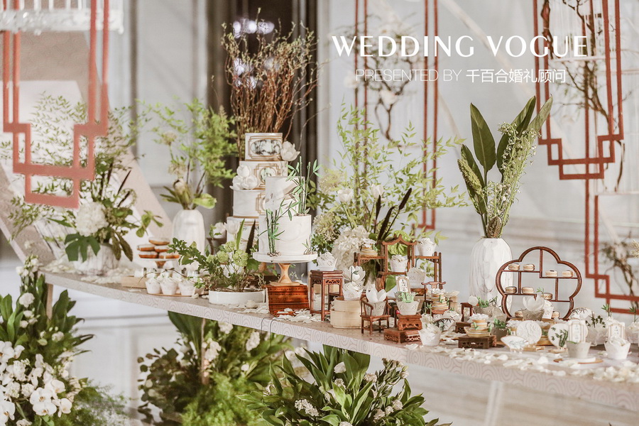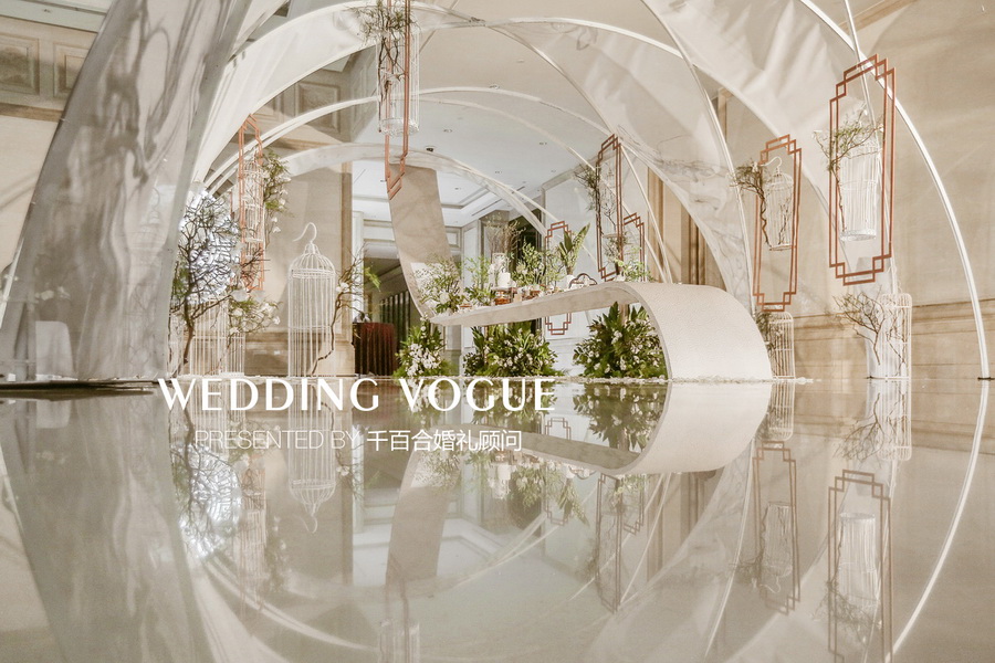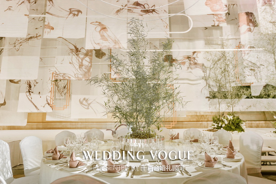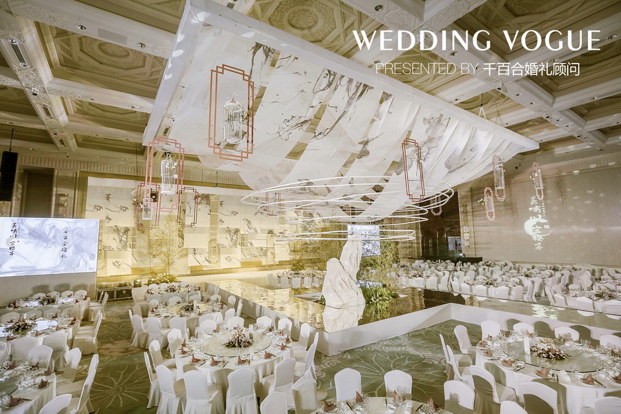 最初不少业内的朋友向新人推荐了千百合婚礼顾问,他们在与千百合婚礼团队相互沟通时,希望婚礼与自身气质相契合、风格独特,提出运用中国画中的元素塑造婚礼古典庄重有含有生动气韵的氛围。