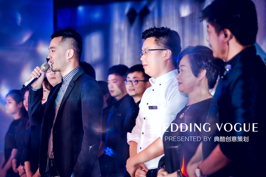 流程结束后,典酷创意策划的创始人天乐带领着他的婚礼团队上台致谢,并阐述此次婚礼秀诞生的心路历程。