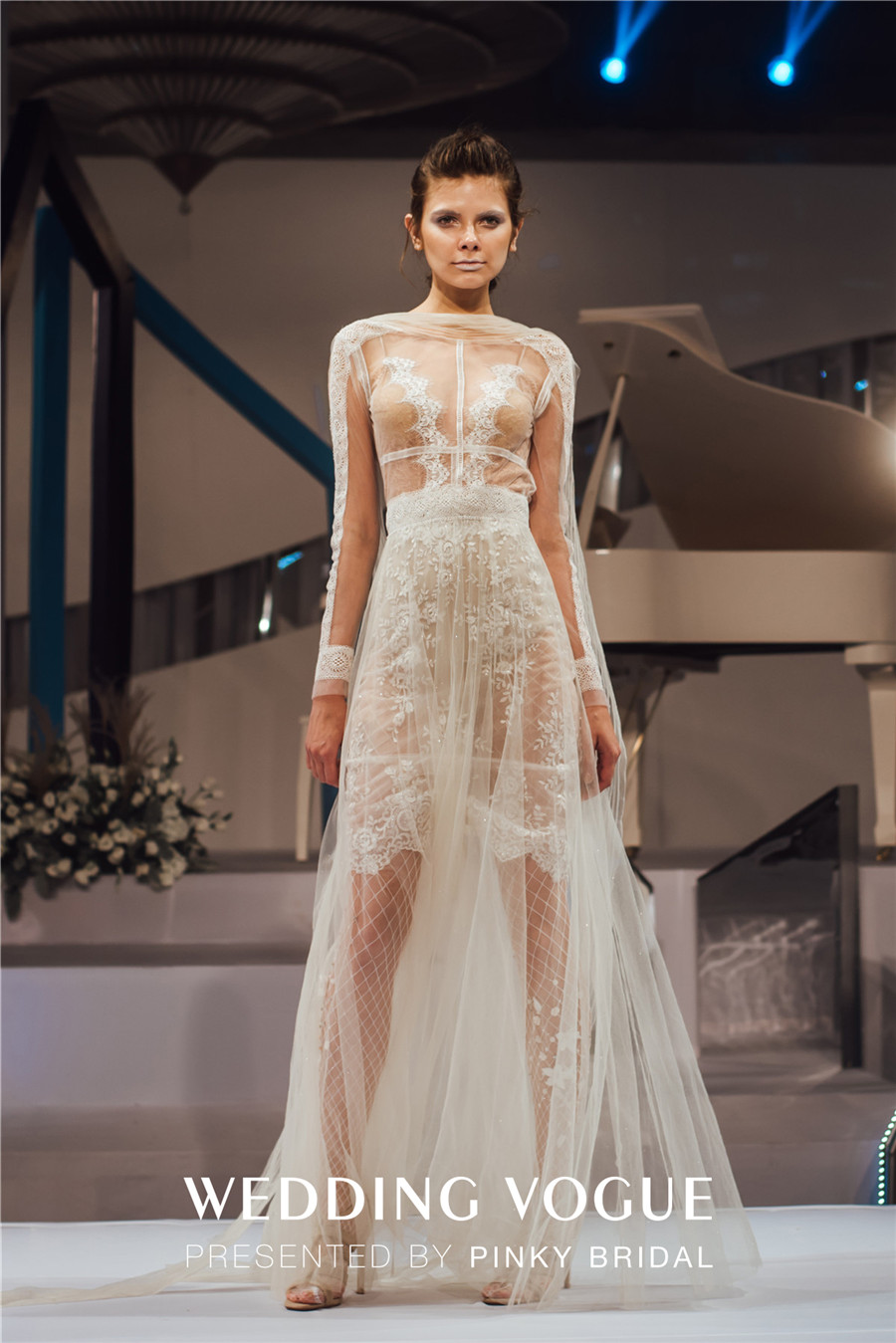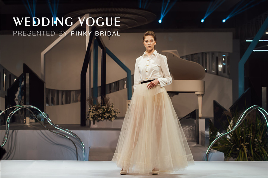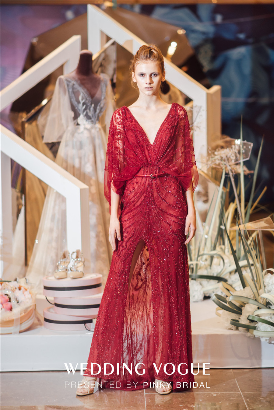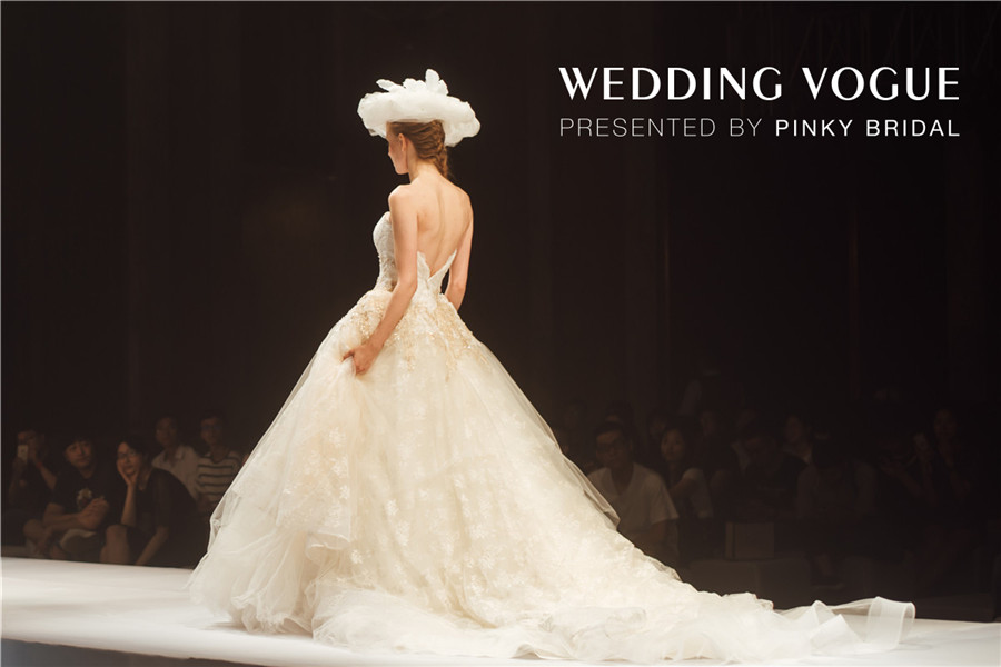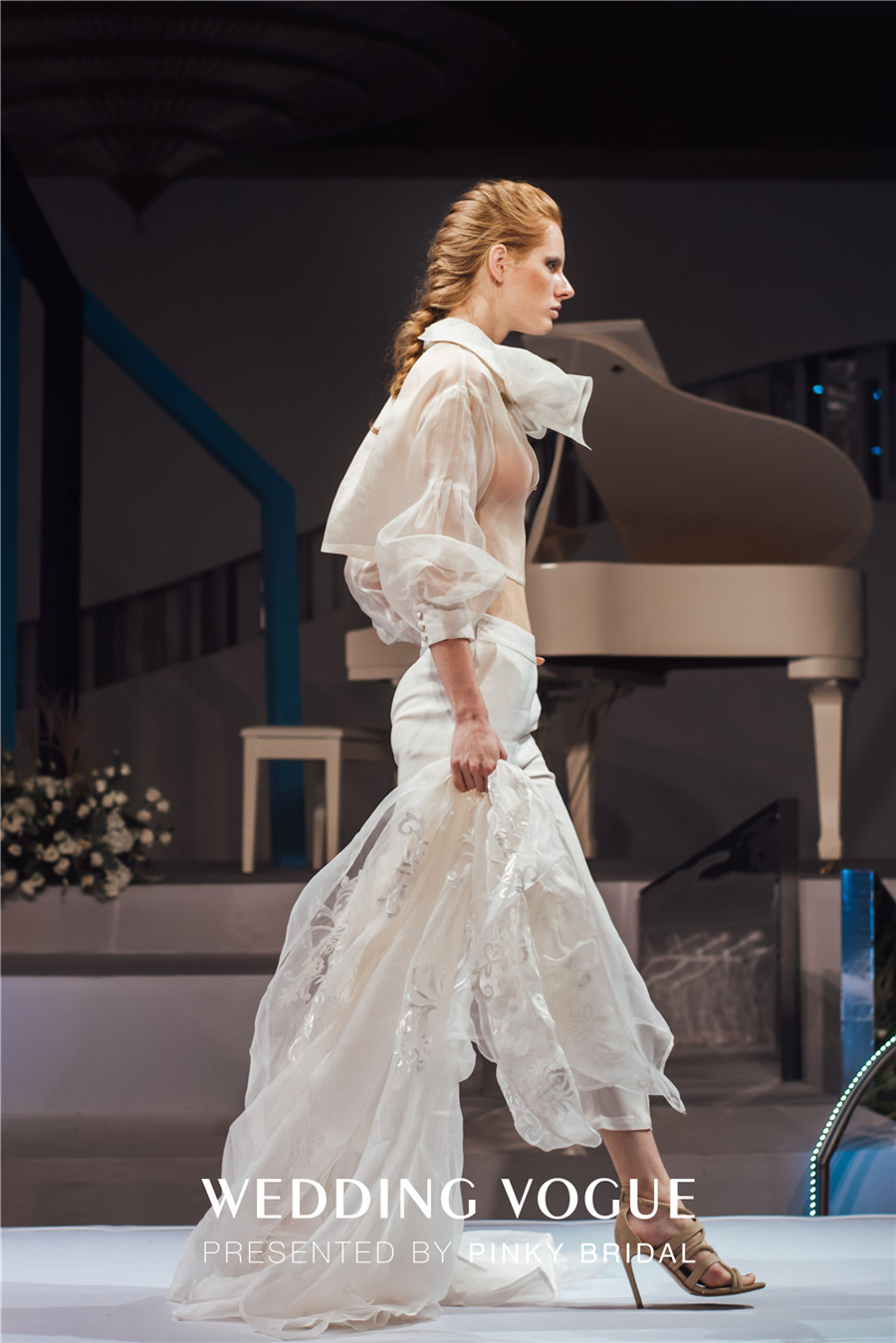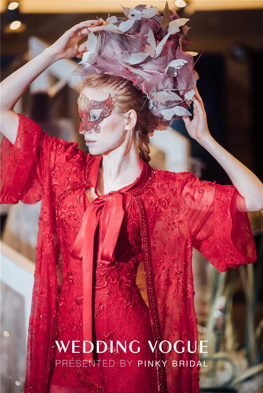 本次婚礼秀,PINKYBRIDAL婚纱礼服发布的主题为“印纪”,分为过去、未来和现在三个篇章。