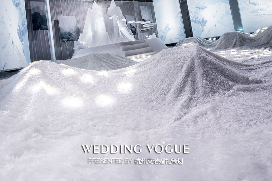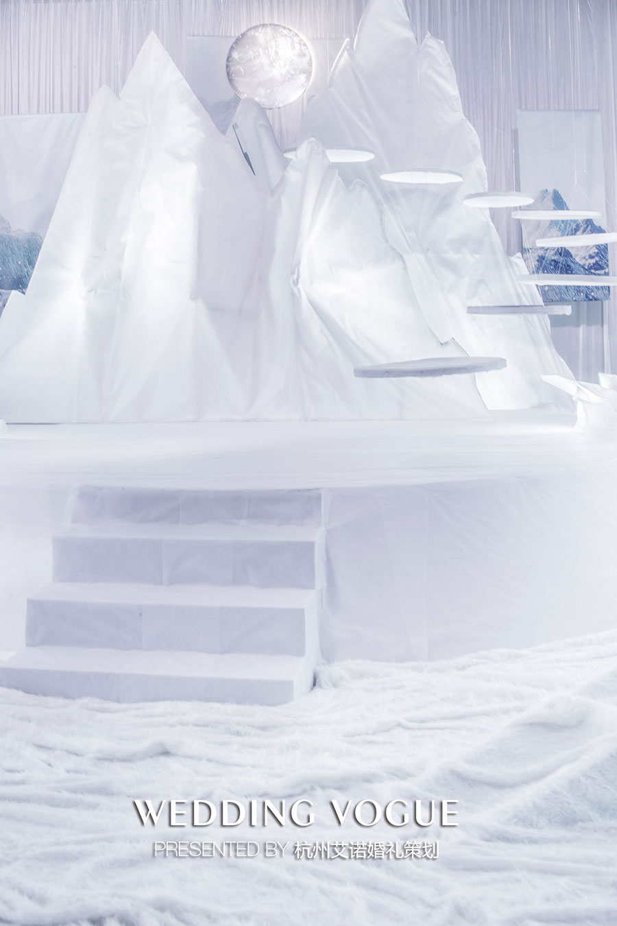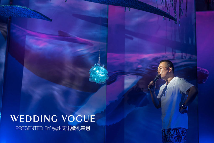不管是深海,还是雪山,对于这些场景,大家都会有一个明显温度感受,通过两种截然不同的表达方式,杭州艾诺婚礼策划联合创始人Helen引申出这场的主旨——用合适的温度走向爱情。一开始的时候,男女相遇在最初会因为外在而吸引,而长久的在一起一定是相互发掘内在品质的契合,找到最合适彼此的温度。