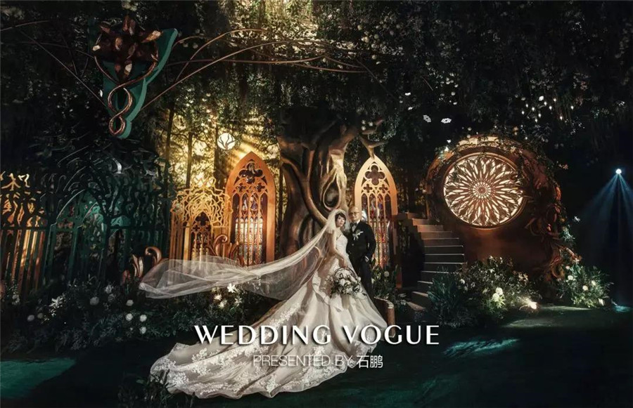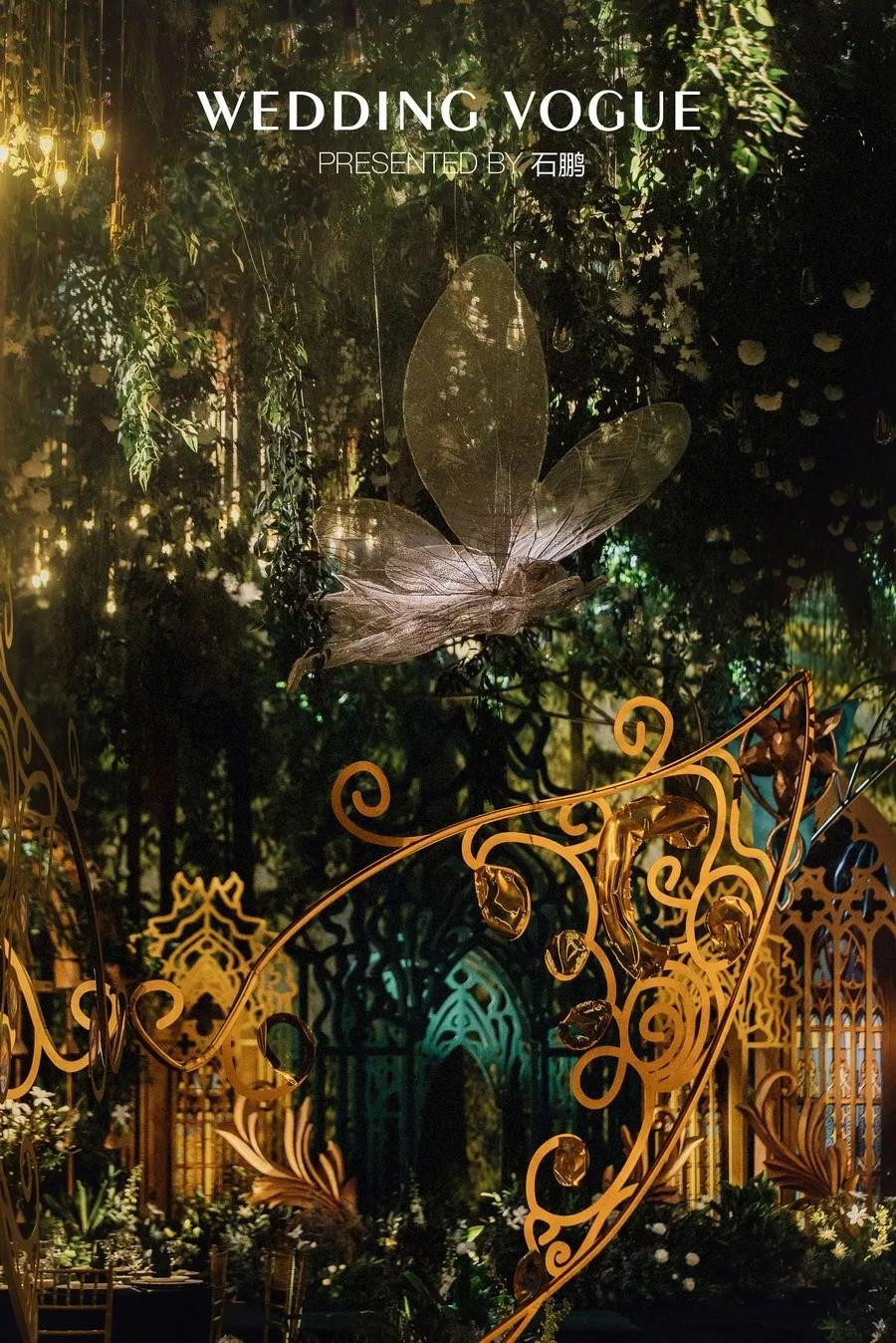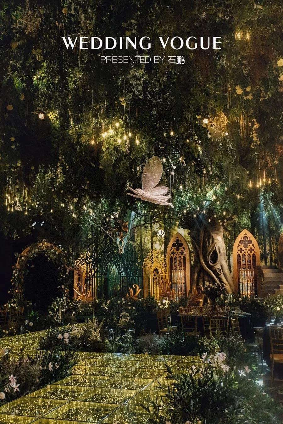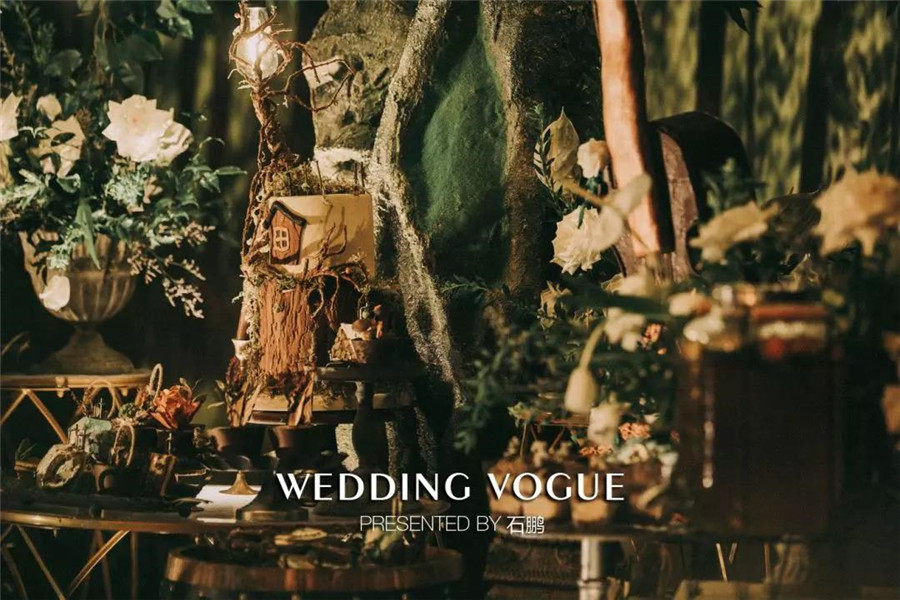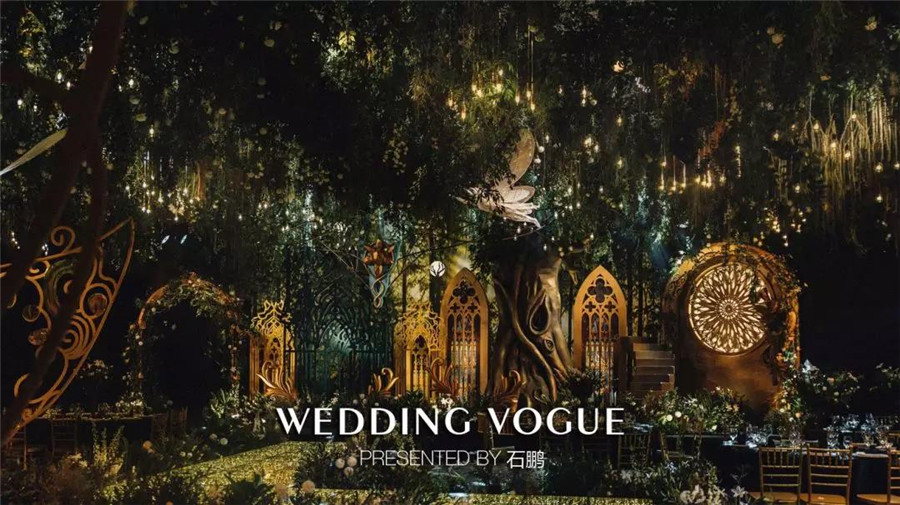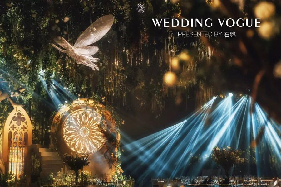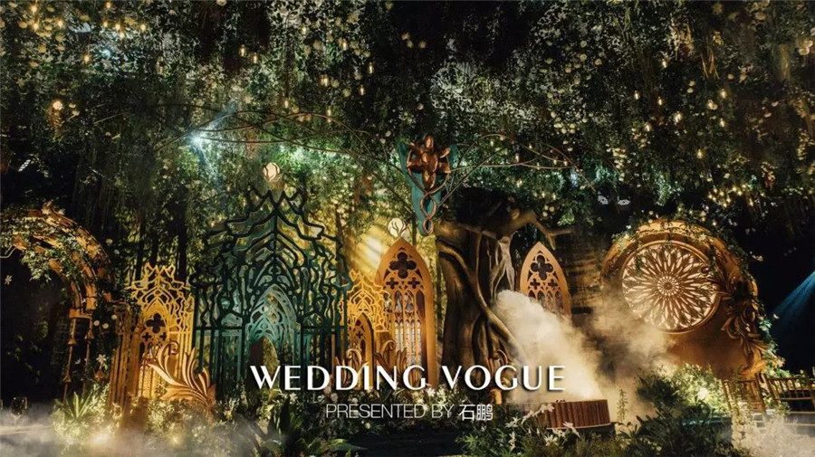 同时,由于一对新人原计划的海外目的地婚礼最终被无奈放弃,所以石鹏也在婚礼中加入了精灵和图腾的元素,来为新娘搭造了一个精灵王国,以满足新娘无法通过海岛婚礼,拥有一场灵动仙意的户外森系婚礼的遗憾。