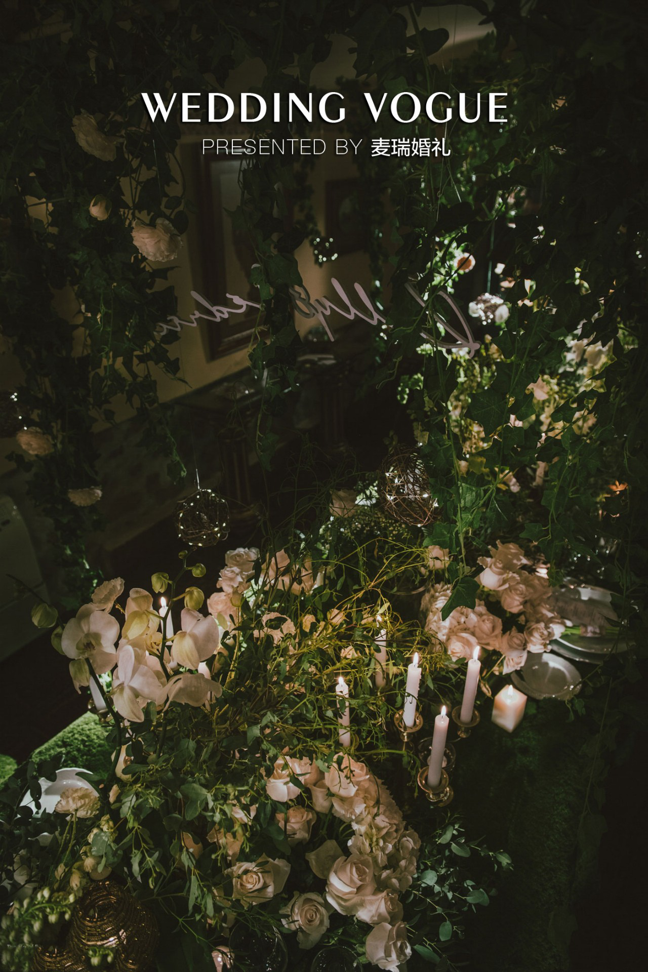 婚礼常谈“通感”,这种感觉在花草之间来回穿梭,体现在每一处花艺设计里,繁冗的同时有迹可循。