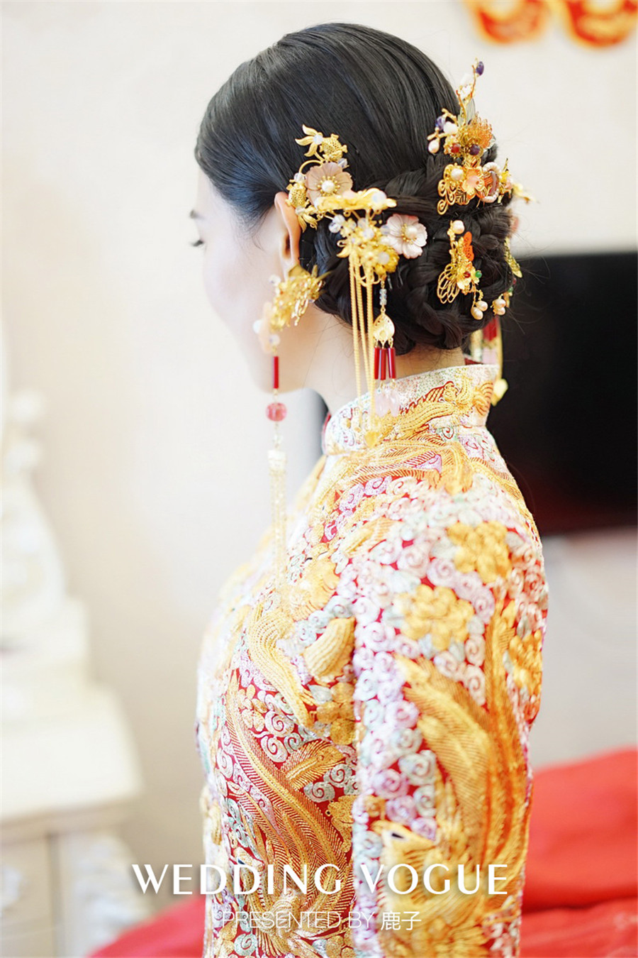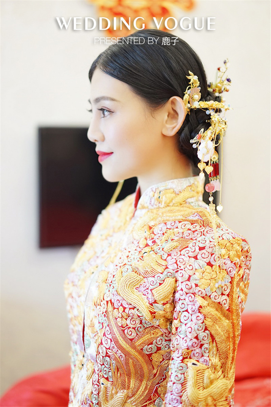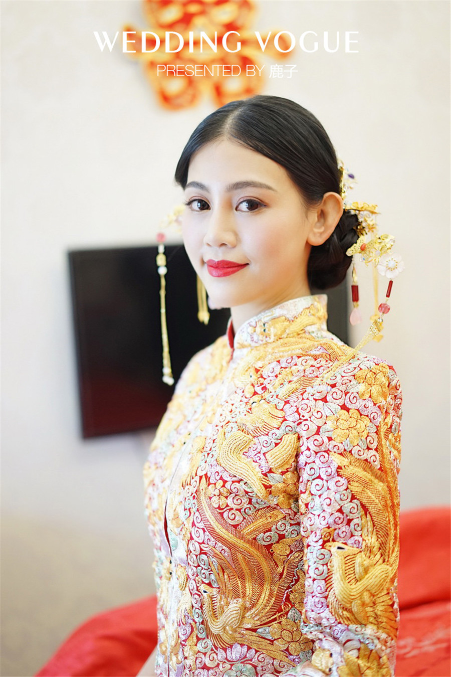 早上的中式造型,底妆一如既往地花了最多的时间在做,小茉容易出汗,也眼浅易哭,底妆极之薄透,所以她哭过了,也不影响整体感觉。鹿子一直都会注重和新娘子沟通的过程,了解每个新娘子的性格气质,订制最适合她们的妆容造型,每一次都如此。