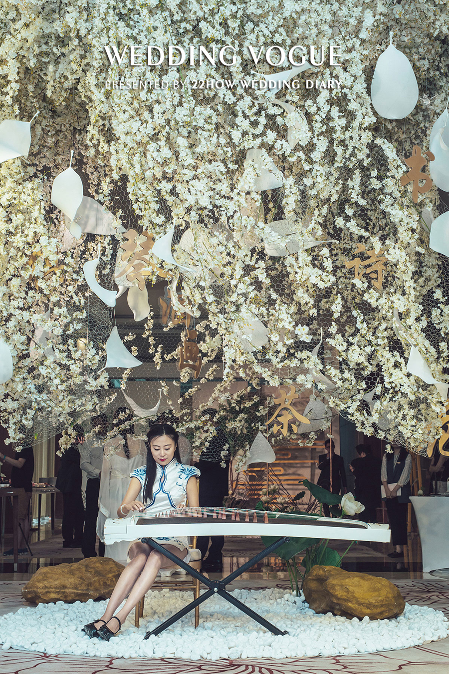 每走近一点,都可以感受到不同角度的视觉享受,22HOW婚礼日志在设计上强调留白的格局,不管是铁艺的山峦还是角楼,都走极简风格。塑造视觉的递进感受,在长廊的设计中,不管是乐器演奏还是手绘团扇,都非常注重宾客的体验感。