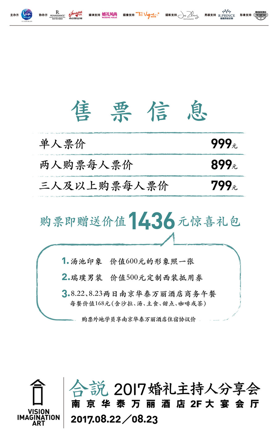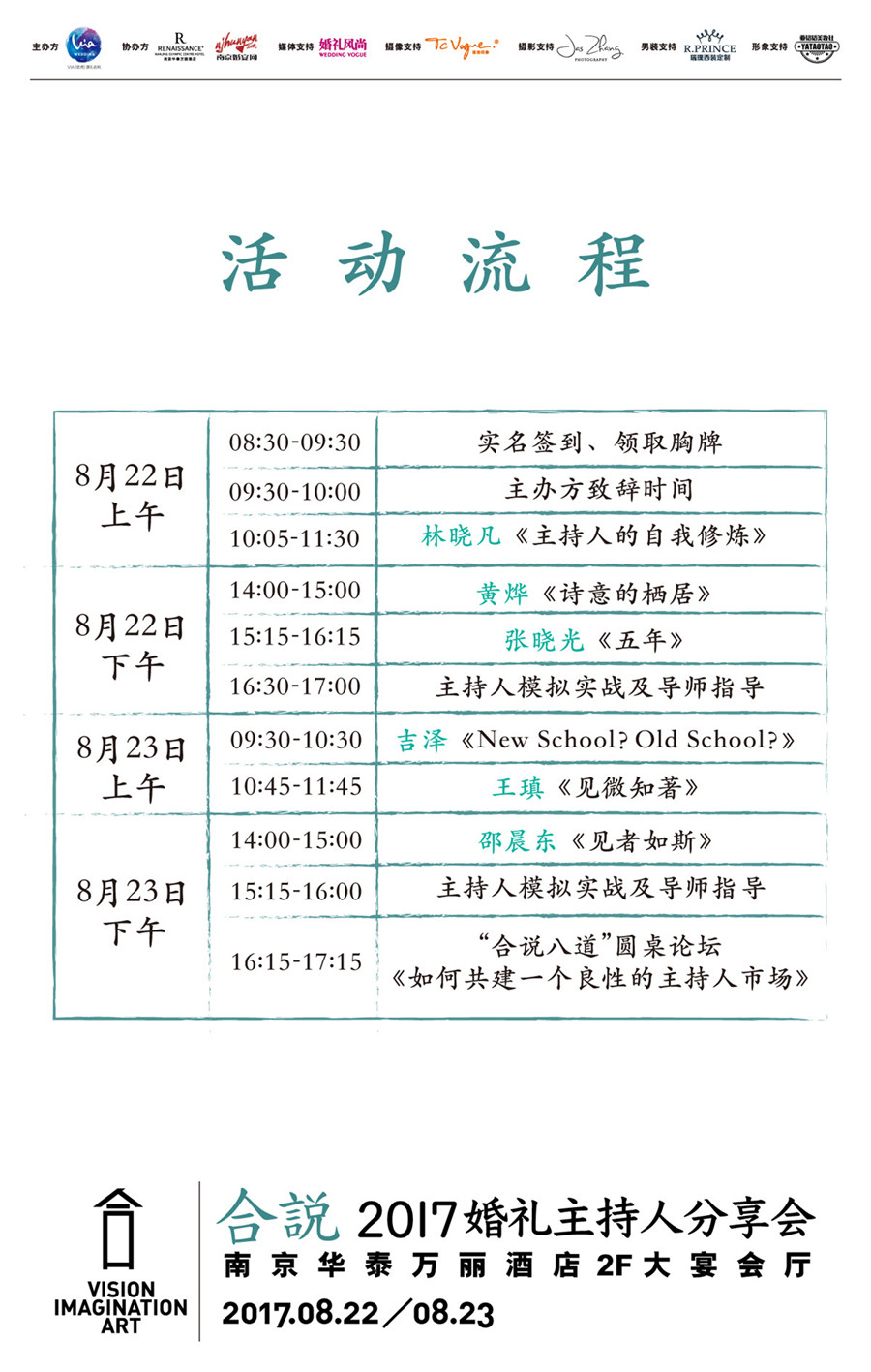 南京首次全国性婚礼主持人分享活动,提高身价也许并不能靠一次学习,但改变自己的机会从此刻开始。8月22—8月23南京华泰万丽酒店,【合说】等你来!