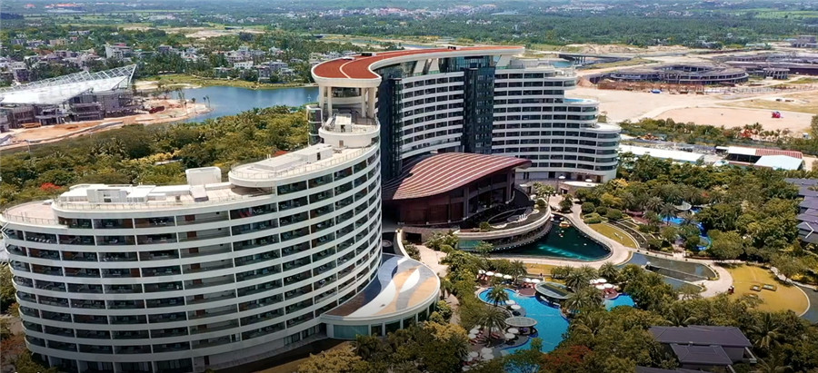 占地15万平方米,坐拥碧海幼沙,绵延椰林,如一条巨龙在海岸线傲世而立。3000平方米开放式大堂特色视角,将南中国海景致一览无遗。