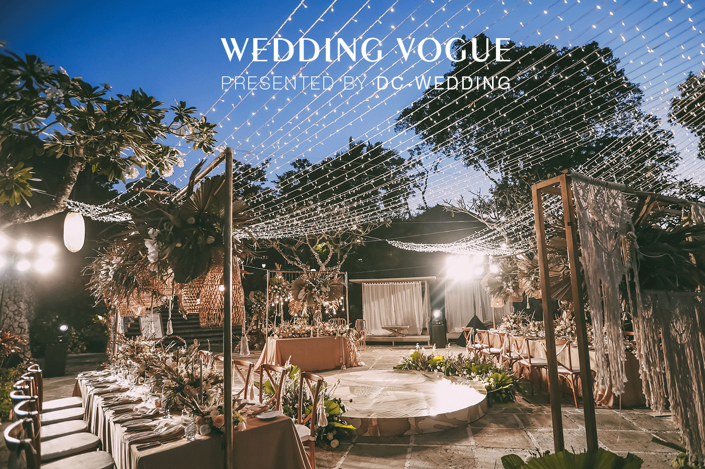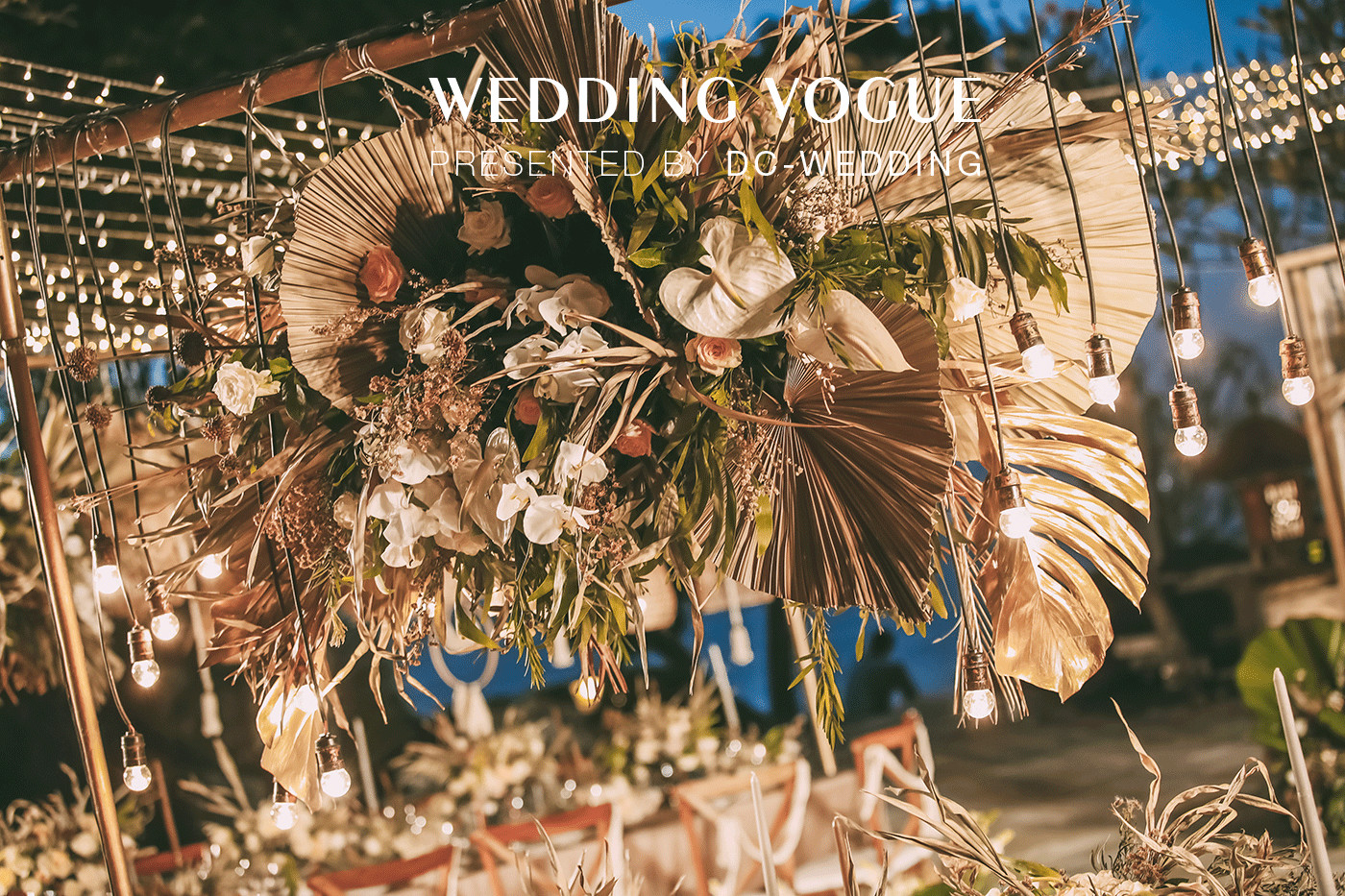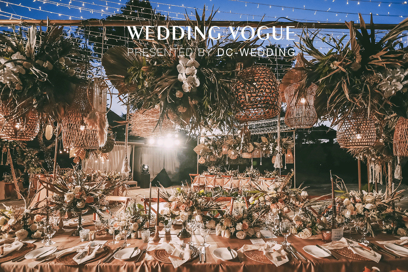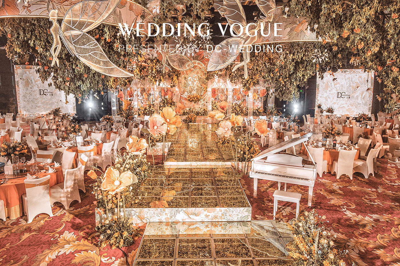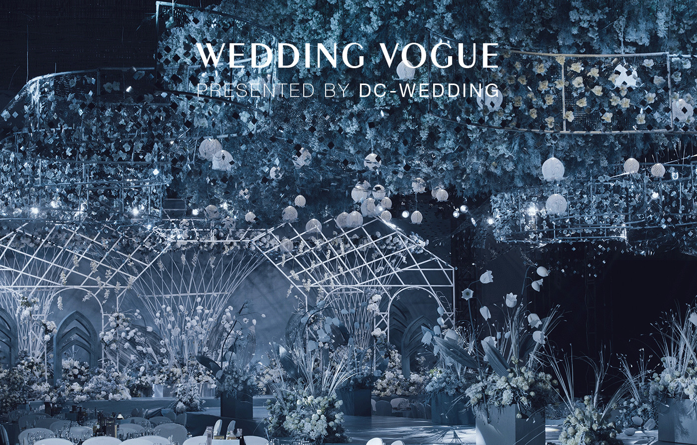 对于“2019亚洲婚礼风尚盛典”的宴会设计发布,DC Wedding大蔡将建筑,自然融为一体,在有限的范围内,利用自然条件,根据场地中的树木形状和地形进行设计。