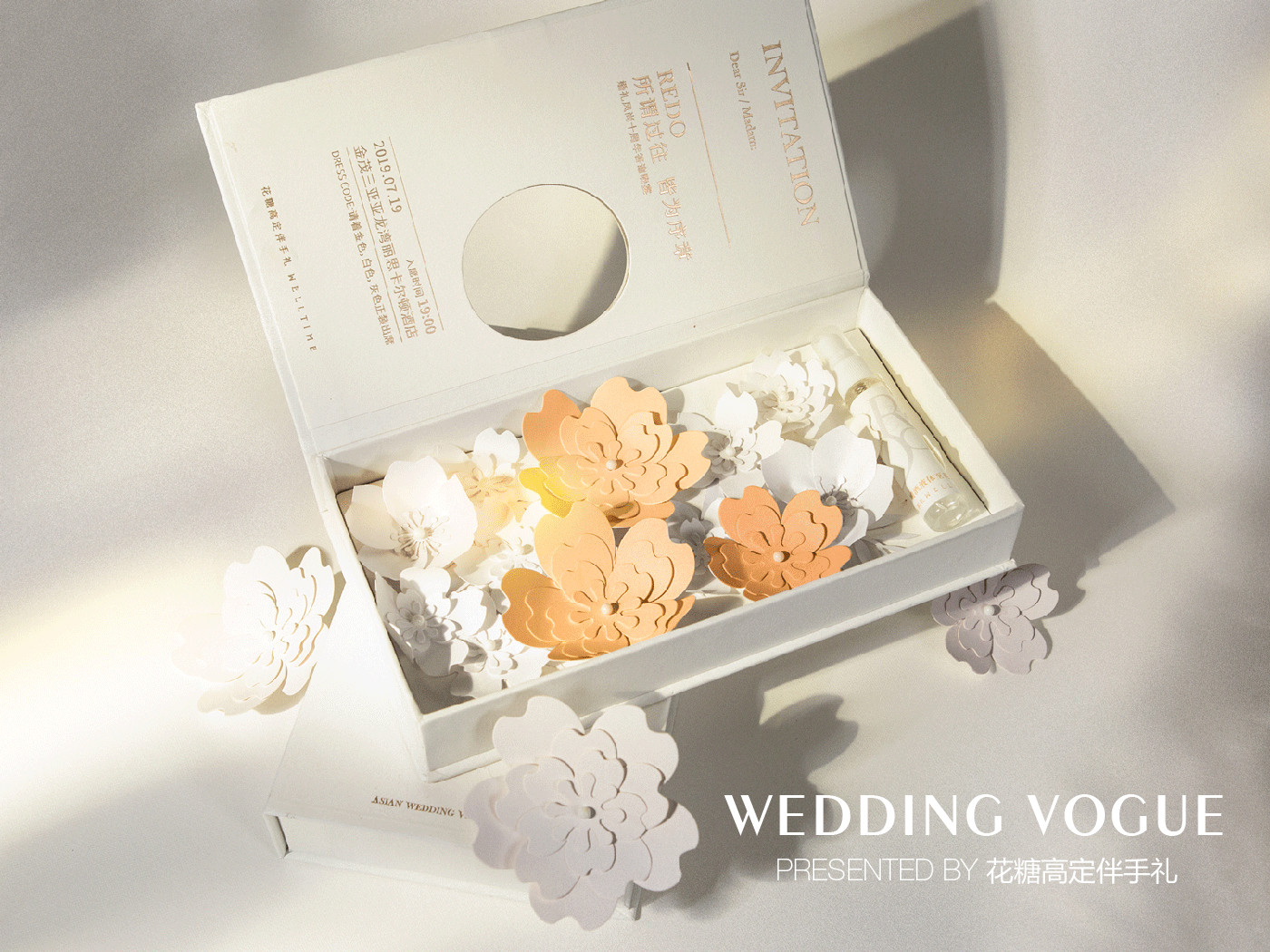 距离“2019亚洲婚礼风尚盛典”开幕已剩下短短数日,近期由花糖高定伴手礼(以下简称;花糖)制作的“2019亚洲婚礼风尚邀请函”陆陆续续从婚礼风尚的手中传递给每一位参与盛典的合作伙伴。