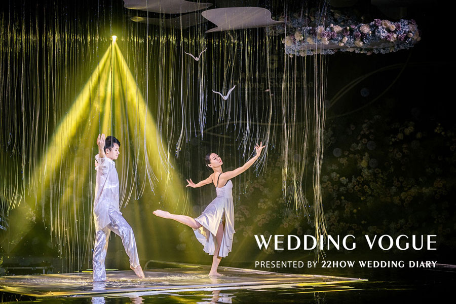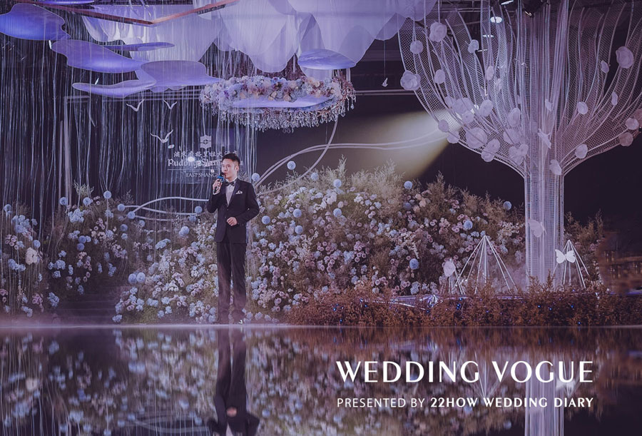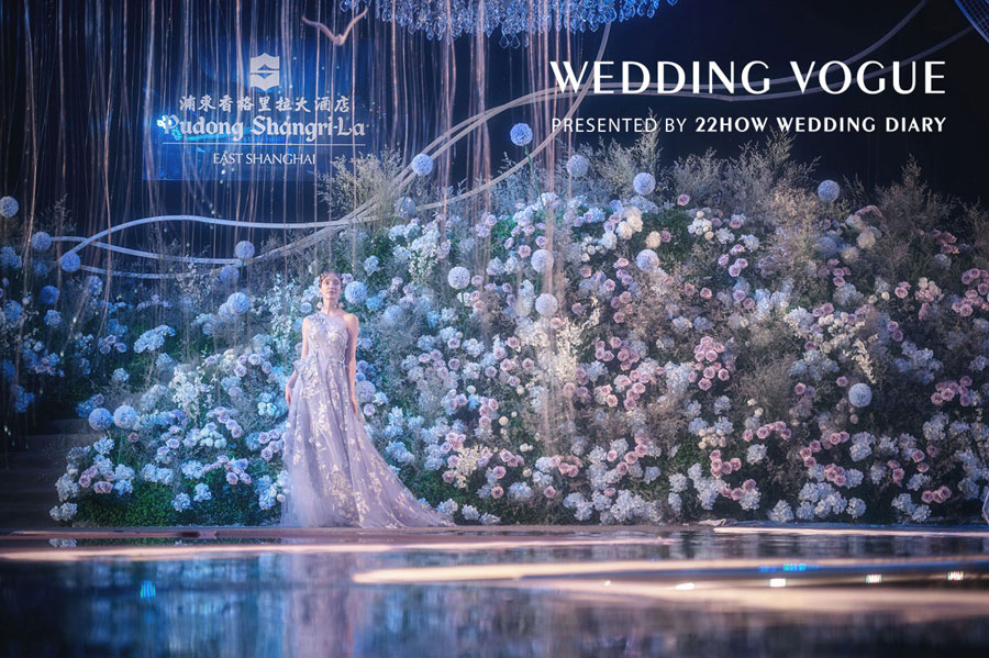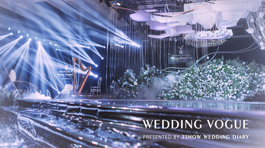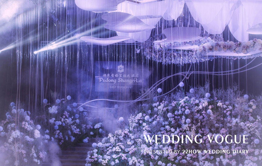 22HOW婚礼团队为了贴合浦东香格里拉的品牌概念来源《消失的地平线》中提到的一个故事——一群人因为飞机失事掉落到了云南香格里拉这个秘境之源,并感叹这块土地的奇妙和壮观......所以22HOW婚礼团队特意把这个象征着香格里拉自然风光的“秘境”,作为婚礼秀的主体概念。