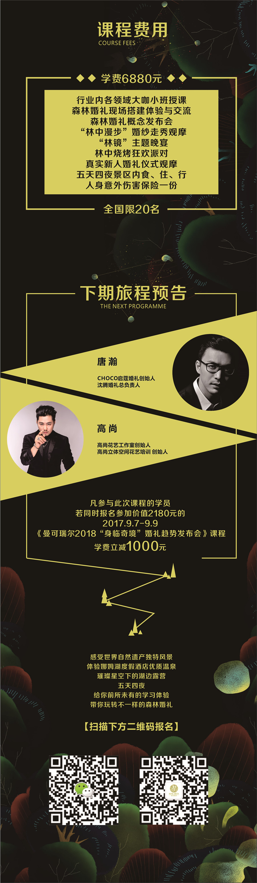 9月3日-9月5日,和曼可瑞尔一起体验一场前所未有的森系婚礼之旅吧!