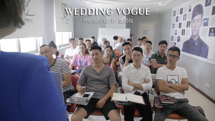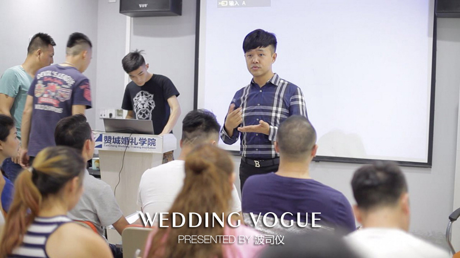 课程第五天主要是私训成果发布。学员们在波司仪的带领下,进行婚礼秀演绎以及样片录制。
