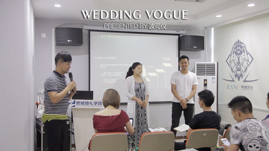 课程主题是台词的创作、流程及创意。波司仪为学员们介绍了很多婚礼开场白当前流行的创作方法,还针对婚礼各个环节中的小创意以及实施细节做了细致讲解。