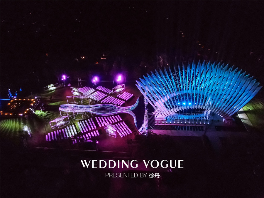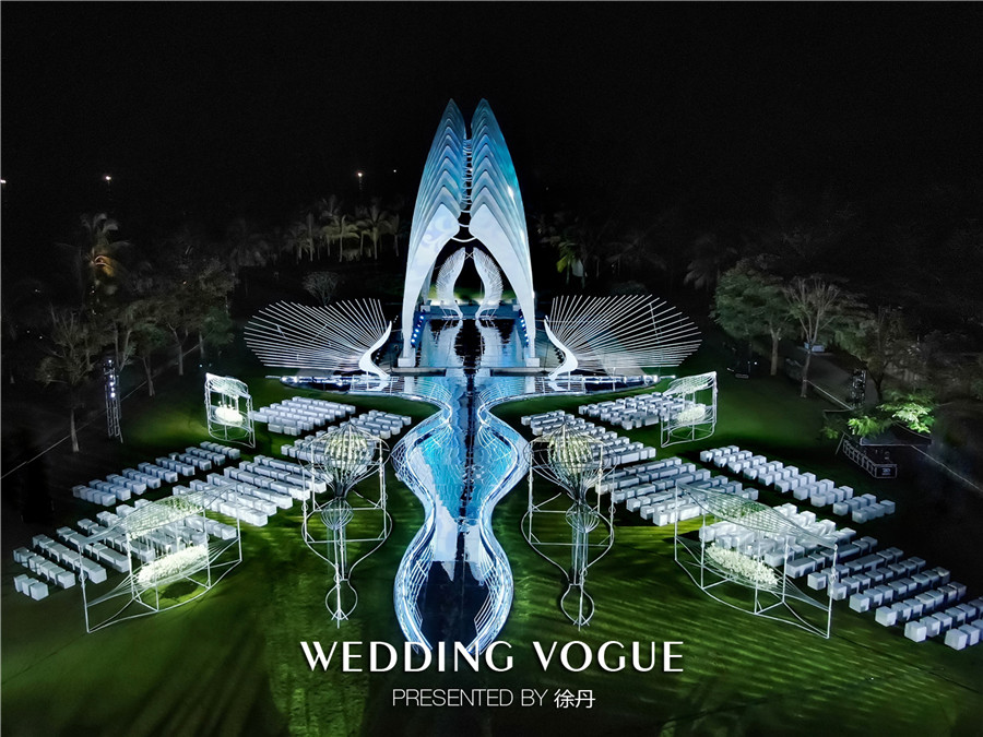作为2019亚洲婚礼风尚盛典首场宴会设计发布,也是此次盛典的开幕场地,我们选在了三亚海棠湾红树林度假酒店的未来塔户外草坪,由著名的宴会设计师徐丹设计,常小满、海天携手主持演绎。