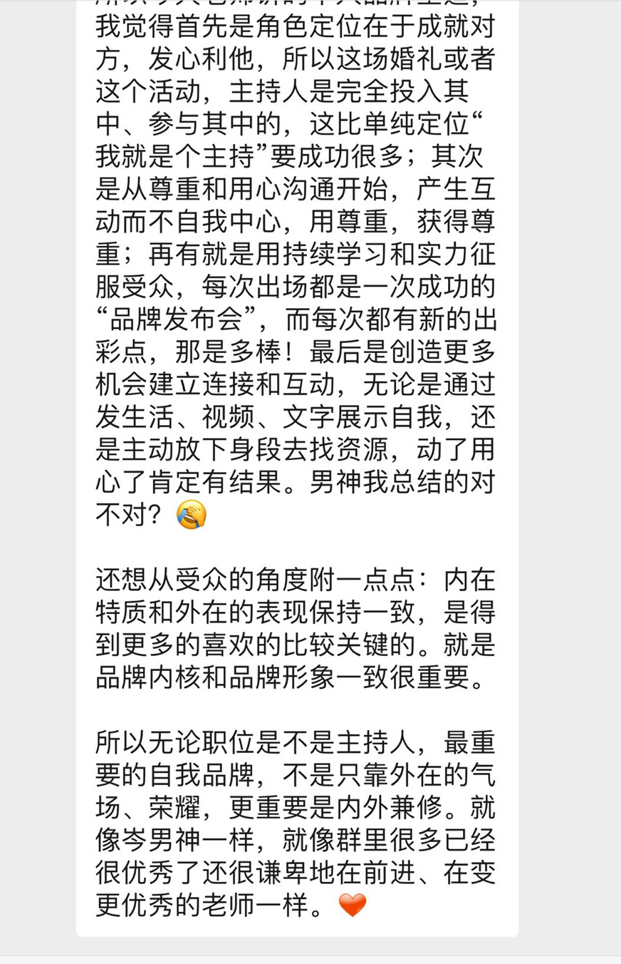 而现在,更多主持人的视频作品,微信课程都呈现在大家面前。有人说这是一个最坏的时代,其实这应该是一个最好的时代,因为你有更多的机会,去提升、去学习。