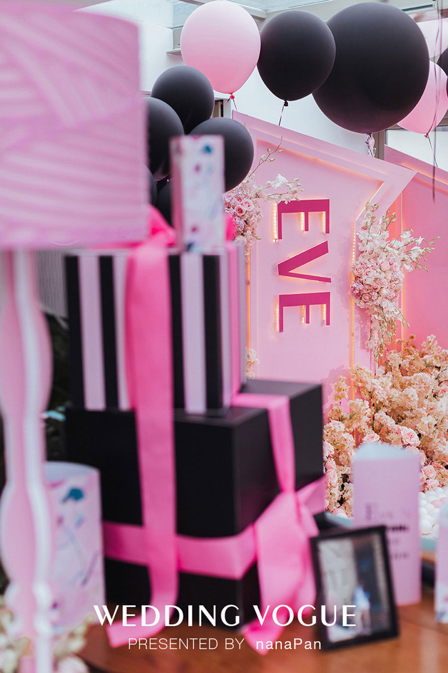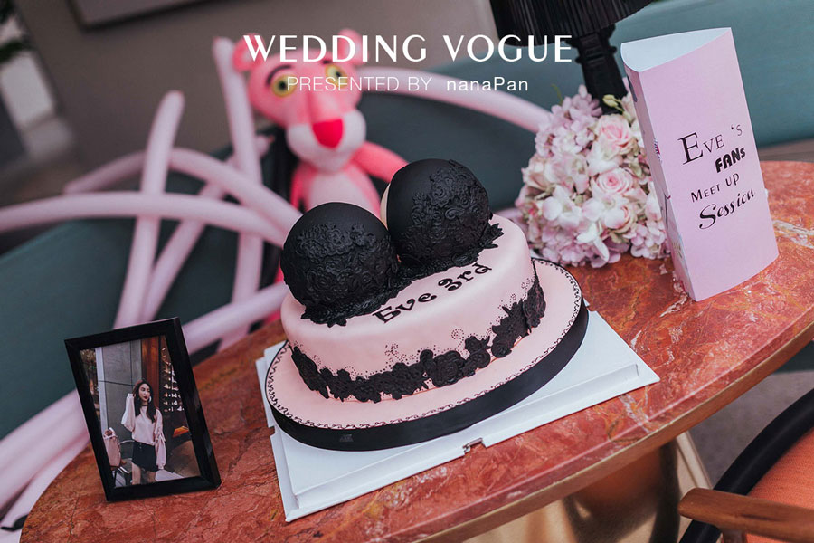 E罩杯蛋糕、粉色台灯、黑色气球