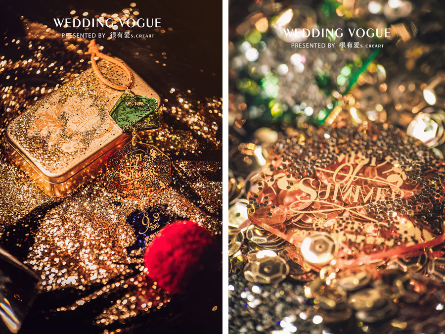 本次婚礼秀的邀请函和伴手礼,由很有爱screart独家策划设计。设计师Suri将「五彩斑斓的色块」与「浓郁华丽的西西里风情」这两大婚礼秀亮点融入至设计当中,让所有来宾都能从细节之处感受到的主题概念与格调。