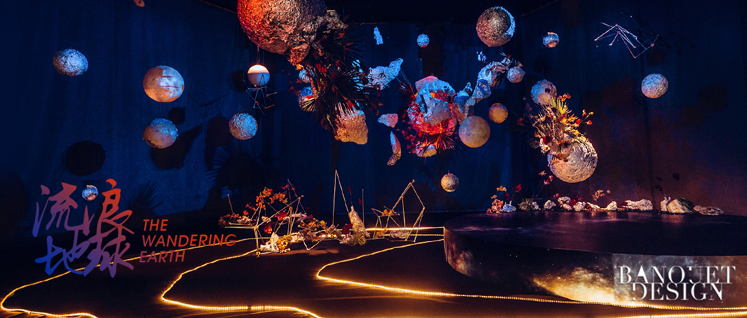 此次以《流浪地球》为灵感,造景宇宙星空的设计,付彬是将电影作为情感的载体,与来宾间快速建立情感联系,以营造带入感与参与感。
