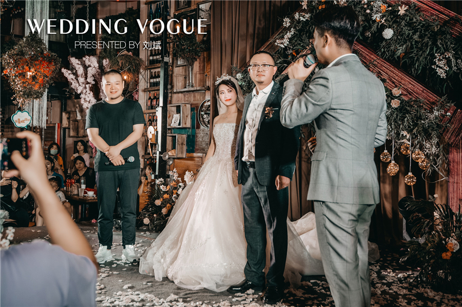 刘斌本人对于这场婚礼也特别上心,从前期对接和策划到现场布置都事无巨细地一一过问。唯一的遗憾是限于当地的条件有限,所以并没有完全把刘斌的设计意图给完全表现出来,只达到了预期的70%。但即使这样,也已经得到了新郎新娘,包括岳云鹏在内的到场宾客的高度认可。