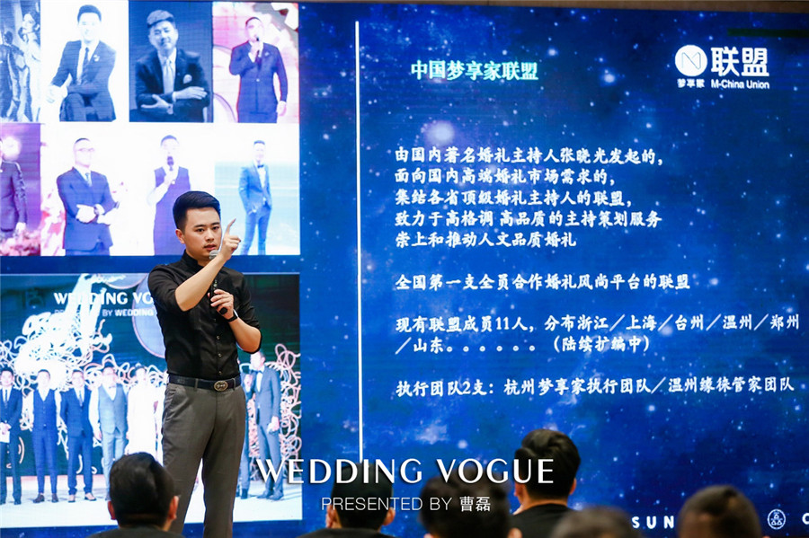 2017年9月17日,主持人曹磊在温州云天楼米兰国际大酒店展开了一场精彩的主题分享会,从婚礼主持到整个行业,从价格到价值,他带领着大家思考,剖析着婚礼人现在和未来发展的趋势。